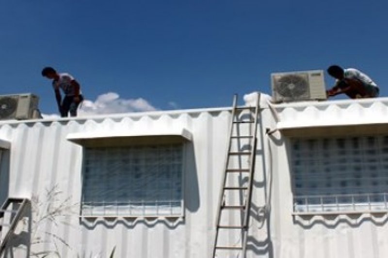 Pekerja sedang memasang AC. ANTARA/Joko Sulistyo