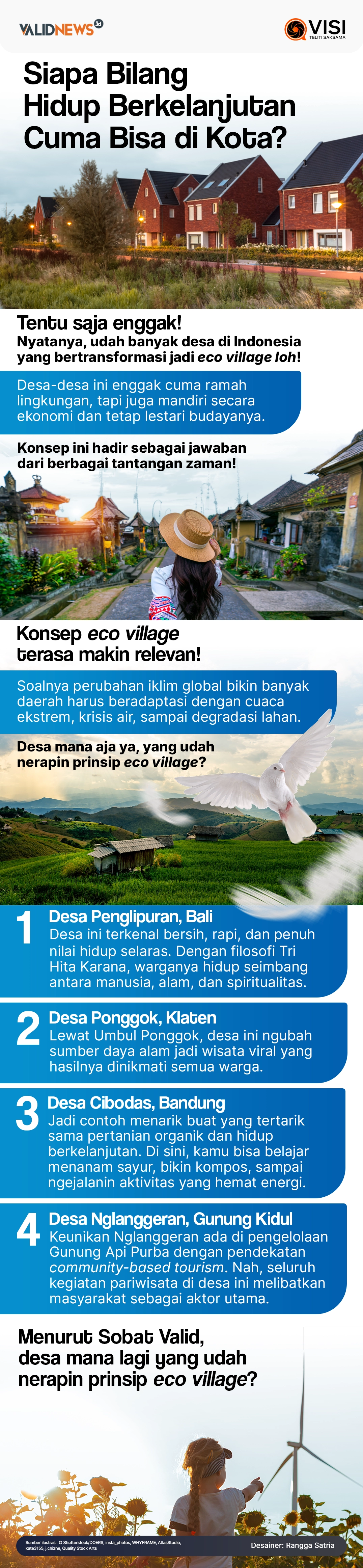 Kabar baiknya, Sobat Valid tidak perlu jauh-jauh mencari contoh nyata penerapan desa ramah lingkungan ini. Di berbagai wilayah, sudah ada banyak desa yang berhasil menerapkan prinsip eco-village sesuai dengan kondisi dan potensi lokal mereka.