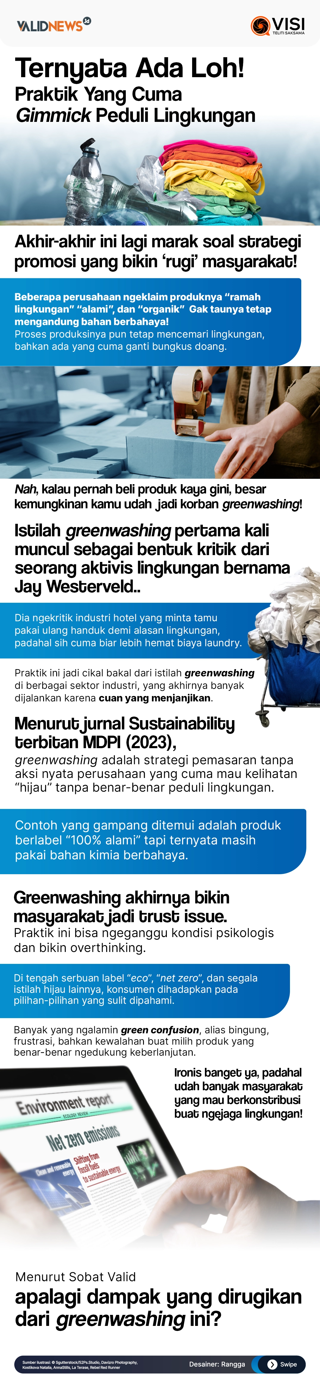 Oleh karena itu, sangat penting bagi konsumen, untuk lebih jeli dan kritis sebelum memutuskan membeli suatu produk. Nah, jika kamu masih bingung, artikel ini akan membantu kamu mengenal lebih dalam tentang apa itu greenwashing, seperti apa ciri-cirinya, dampak jangka panjangnya, serta langkah-langkah cerdas supaya Sobat Valid tidak mudah terjebak dengan iming-iming “greenwashing.”