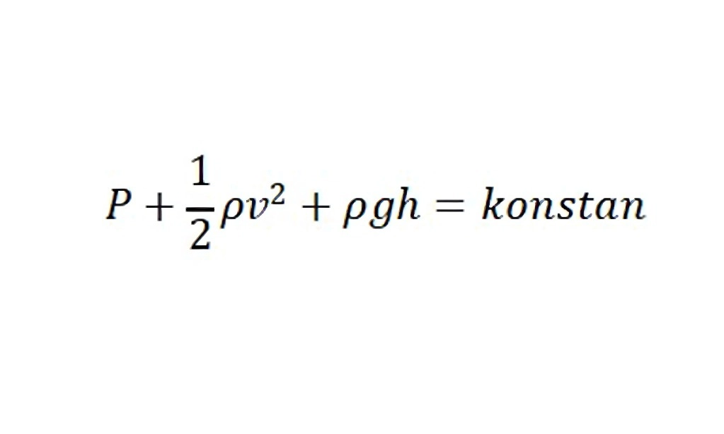 Di rumus ini, P adalah tekanan, ρ massa jenis, v kecepatan, g percepatan gravitasi, h ketinggian. Artinya, dalam aliran fluida yang stabil dan tanpa gesekan (ideal), jumlah energi tekanan, energi kinetik, dan energi potensial tetap konstan sepanjang jalur alirannya. Maka, ketika salah satu komponen meningkat, yang lain akan menurun untuk menjaga keseimbangan.
