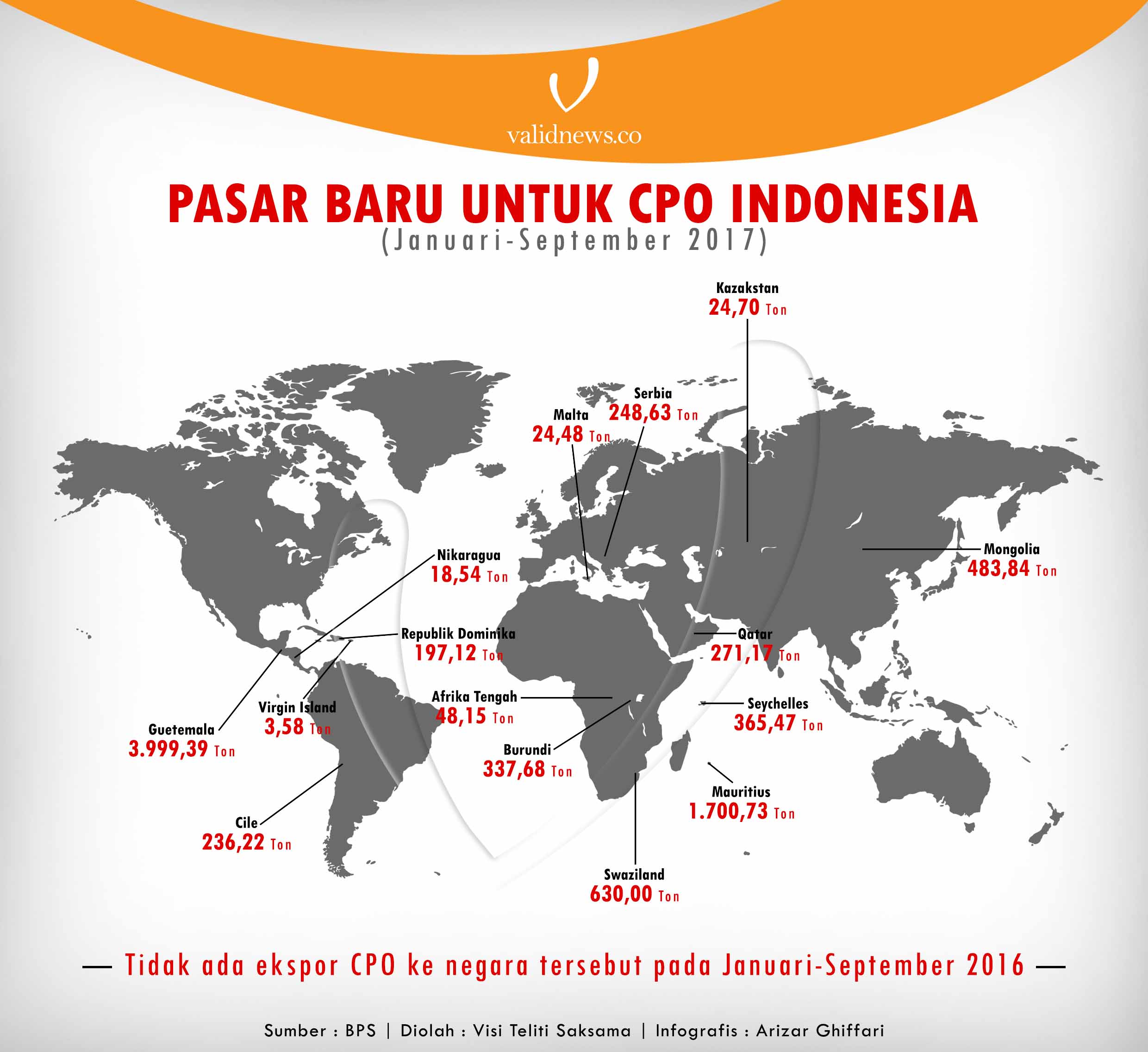 Jika dilihat dari data Statistik Indonesia 2018 oleh BPS, khusus untuk ekspor minyak kelapa sawit Indonesia memang sempat mengalami penurunan di tahun 2016 hingga 13,03% dari tahun sebelumnya yang mencapai 27,67 juta ton. Namun tahun 2017, volume ekspor kembali bergerak positif 4,7 juta ton atau tumbuh 19,55% dari tahun sebelumnya. Ekspor ke India yang melonjak hingga 35,03% jadi salah satu pendongkrak pertumbuhan volume ekspor tahun lalu.