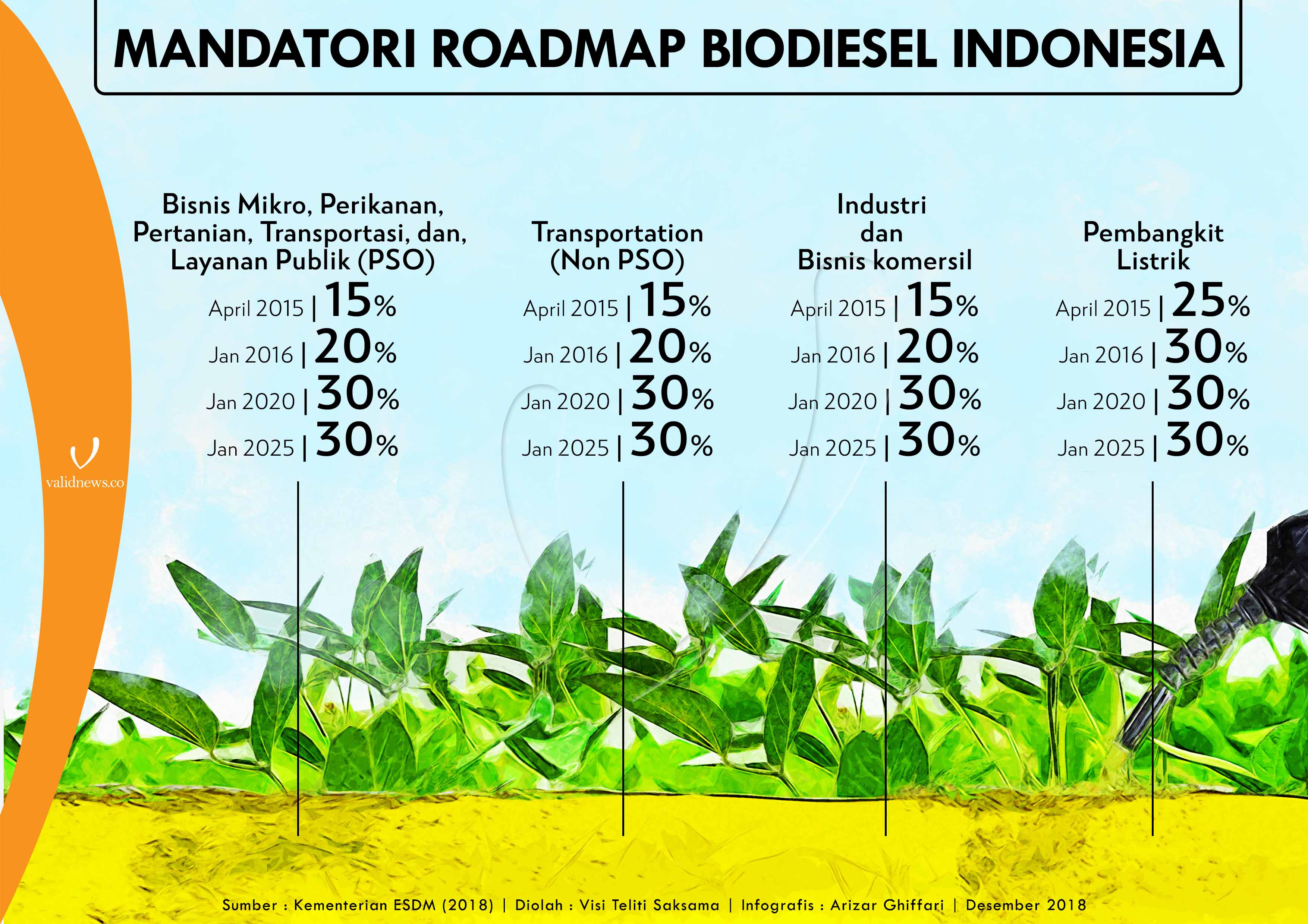 Pemerintah kembali menggenjot pemanfaatan biodiesel melalui penerbitan regulasi mengenai perluasan insentif Biodiesel untuk sektor Non-PSO Permen ESDM No.12 Tahun 2018 tentang Penghimpunan dan Penggunaan Dana Perkebunan Kelapa Sawit. Selain itu, ada pula Permen ESDM Nomor 41 Tahun 2018 tentang Penyediaan dan Pemanfaatan BBN Jenis Biodiesel dalam Kerangka Pembiayaan Dana Badan Pengelola Dana Perkebunan Kelapa Sawit (BPDPKS).
