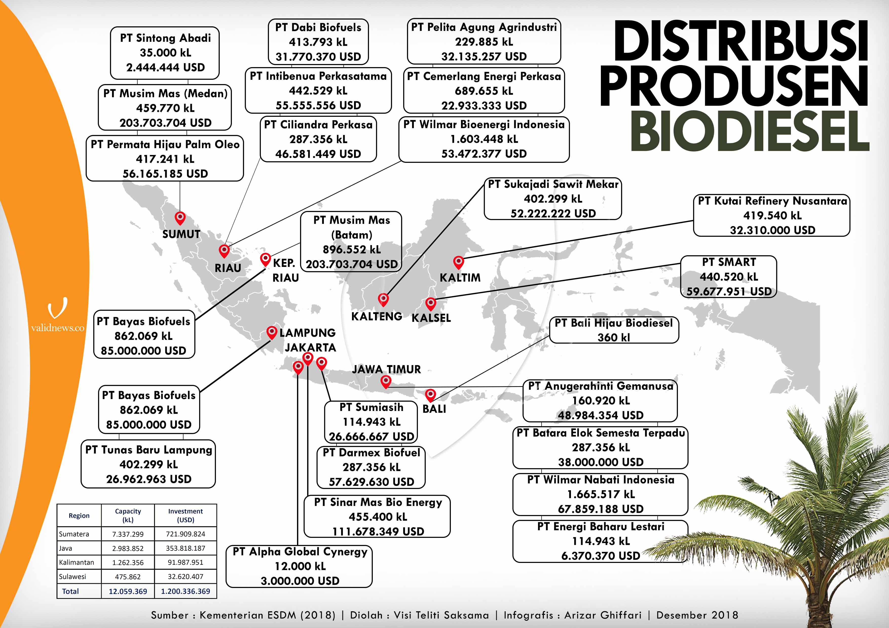 Di periode yang sama, produksi biodiesel dalam negeri tercatat mengalami peningkatan nyaris dua kali lipat dari tahun sebelumnya hingga mencapai 6,01 juta KL. Capaian itu melebihi target produksi 2018 yang sebelumnya hanya dipatok sebesar 5,70 juta KL.