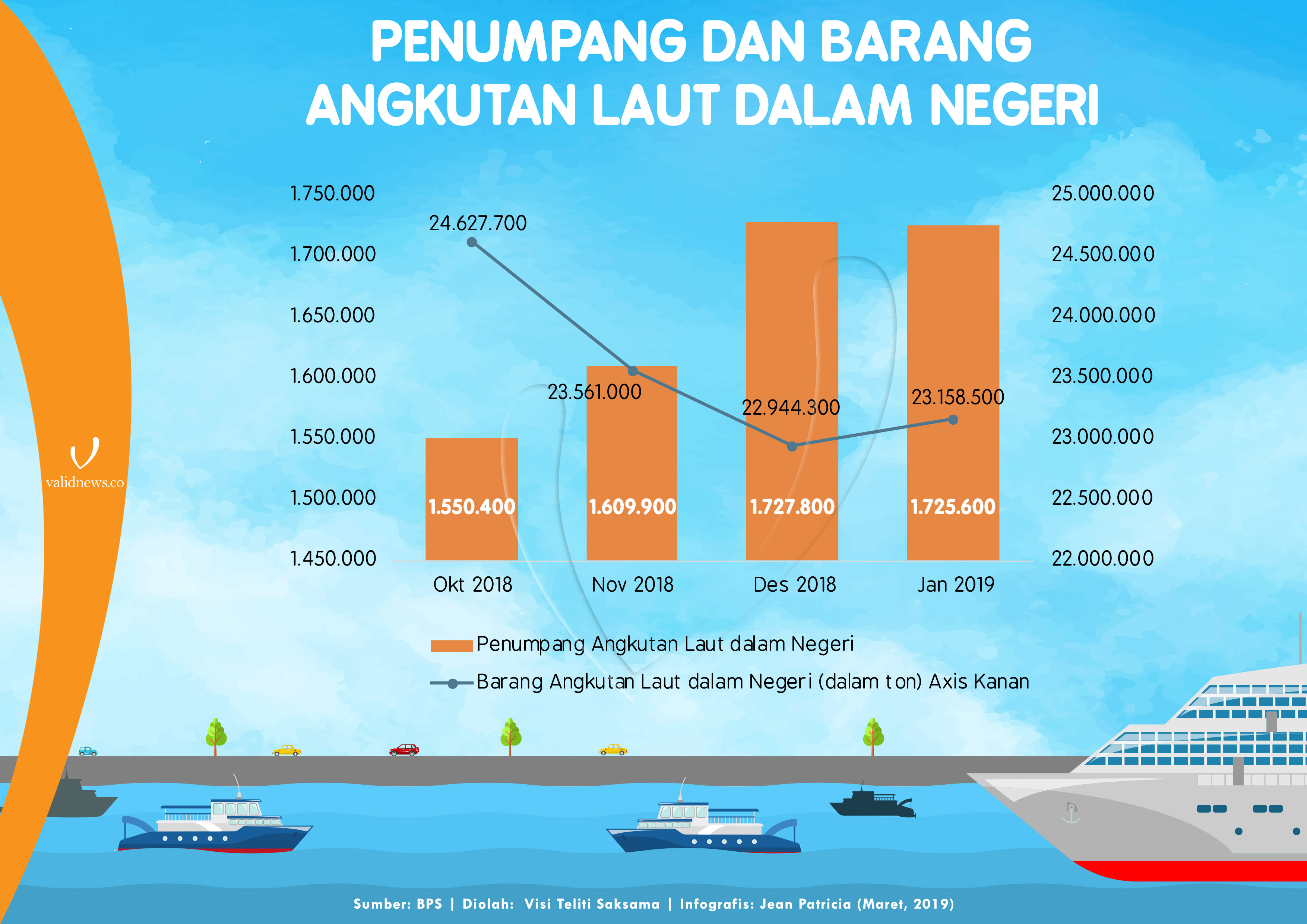 Untuk diketahui, pada Januari 2019 jumlah penumpang domestik yang menggunakan kapal sebagai moda transportasinya mencapai 1,73 juta orang. Sementara itu pada Januari 2018, jumlahnya tercatat lebih sedikit, yakni 1,70 juta orang.