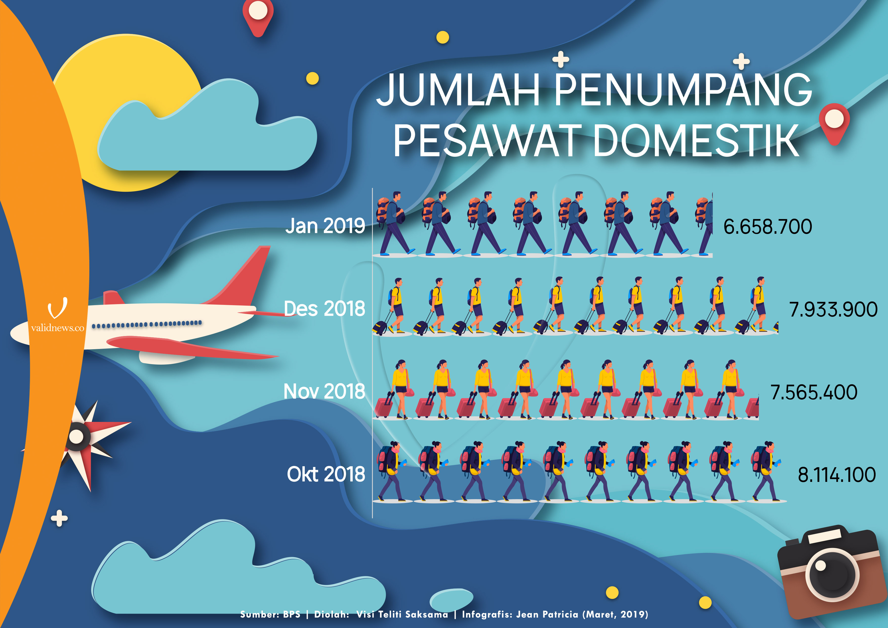 Penurunan penggunaan transportasi udara, baik untuk penumpang maupun kargo tampak jelas dalam data Badan Pusat Statistik (BPS). Setidaknya pada Januari 2019 saja, jumlah penumpang domestik transportasi udara anjlok 12,55% dibandingkan periode yang sama tahun 2018.