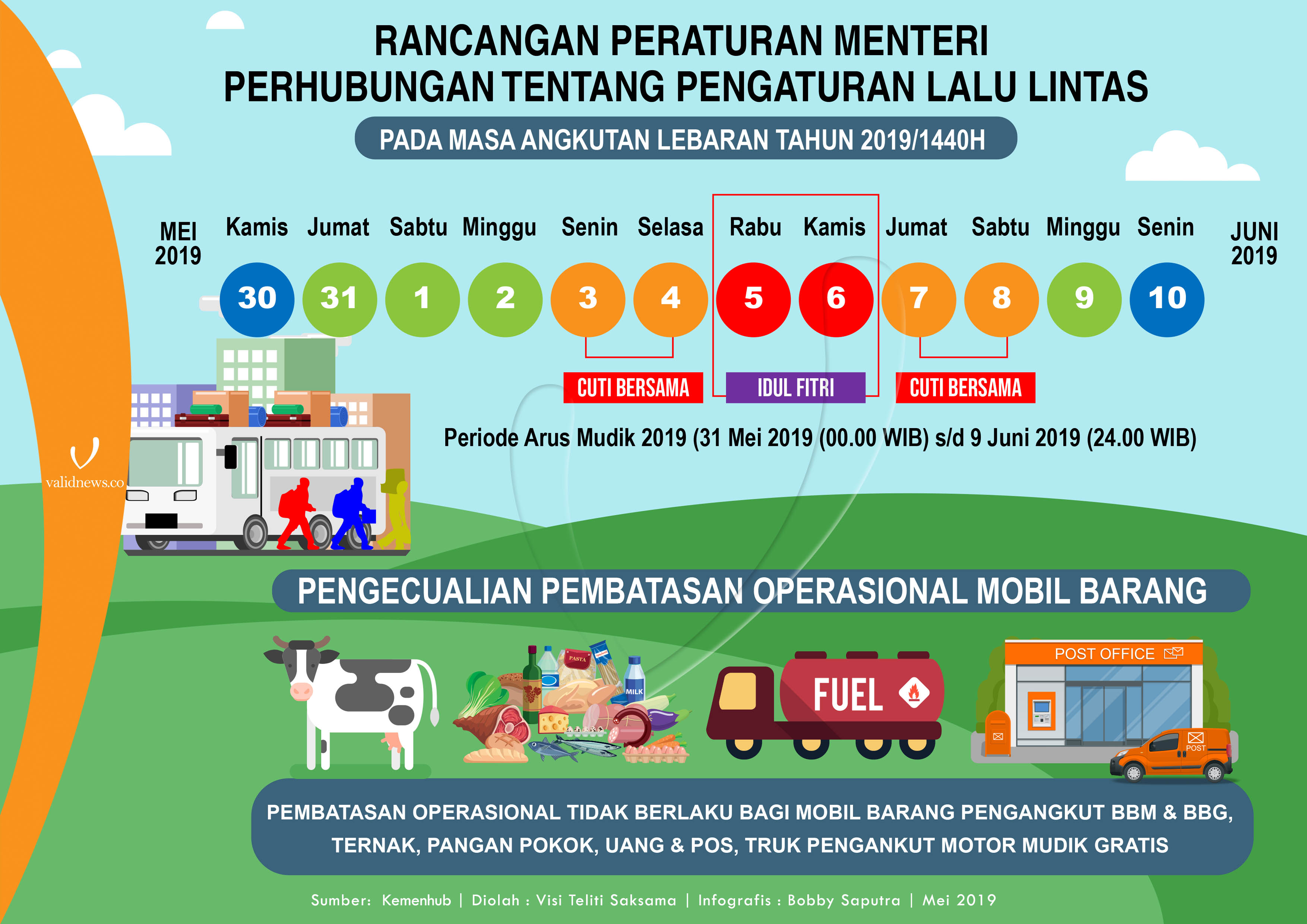 Pelarangan operasi itu diterapkan dalam dua periode. Pertama, saat arus mudik menjelang lebaran, tepatnya 30 Mei–2 Juni 2019. Selanjutnya, truk bersumbu tiga atau lebih juga dilarang beroperasi saat arus balik pada 8–10 Juni 2019.