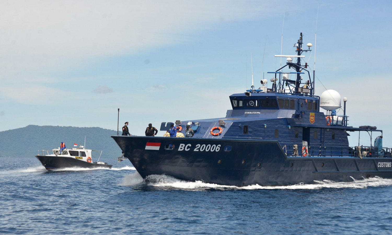 Kapal patroli Bea Cukai, Dirpol Air dan Kementerian Kelautan dan Perikanan (KKP) melakukan patroli l aut di perarian Pulau Sabang, Aceh, Kamis (26/8/2021). Antara Foto/ Ampelsa