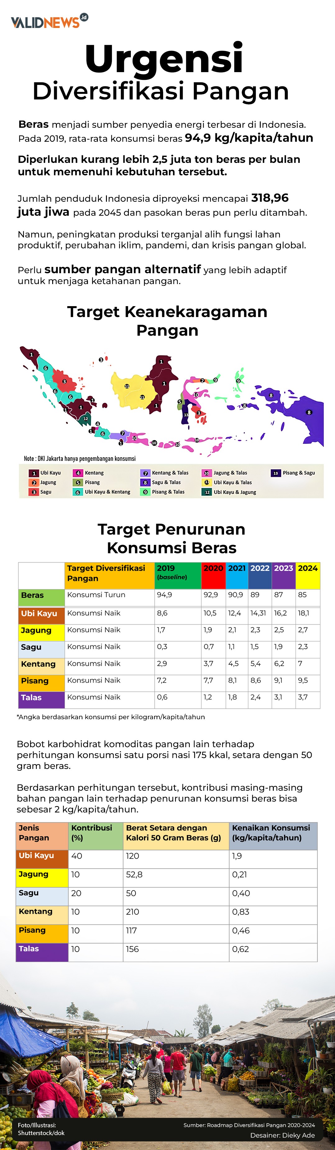 Ini bukan tak diamati pemerintah. Karenanya, mengurangi ketergantungan pada beras dan gandum telah mulai dipikirkan. Setidaknya, sudah ada roadmap diversifikasi pangan 2020-2024, untuk meningkatkan produksi sumber karbohidrat selain beras.