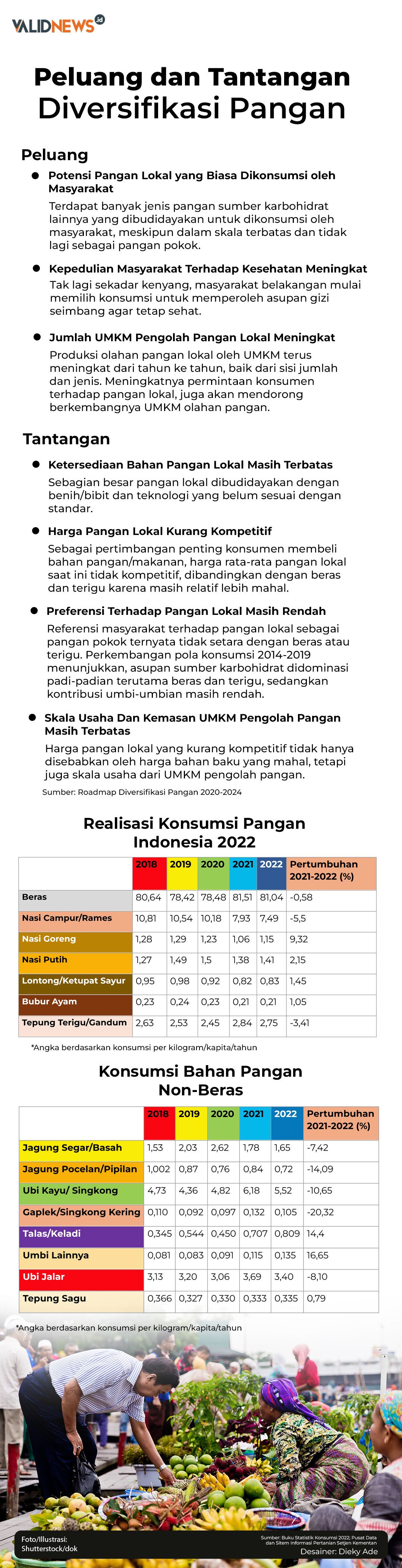 Adhi pun mengamini, diversifikasi berperan sangat penting dalam roda pangan Indonesia, terutama agar tidak bergantung penuh dari satu jenis bahan baku saja. Industri mamin mengidentifikasi produk jenis tepung-tepungan mempunyai banyak alternatif, meski tantangannya juga disinyalir cukup besar.