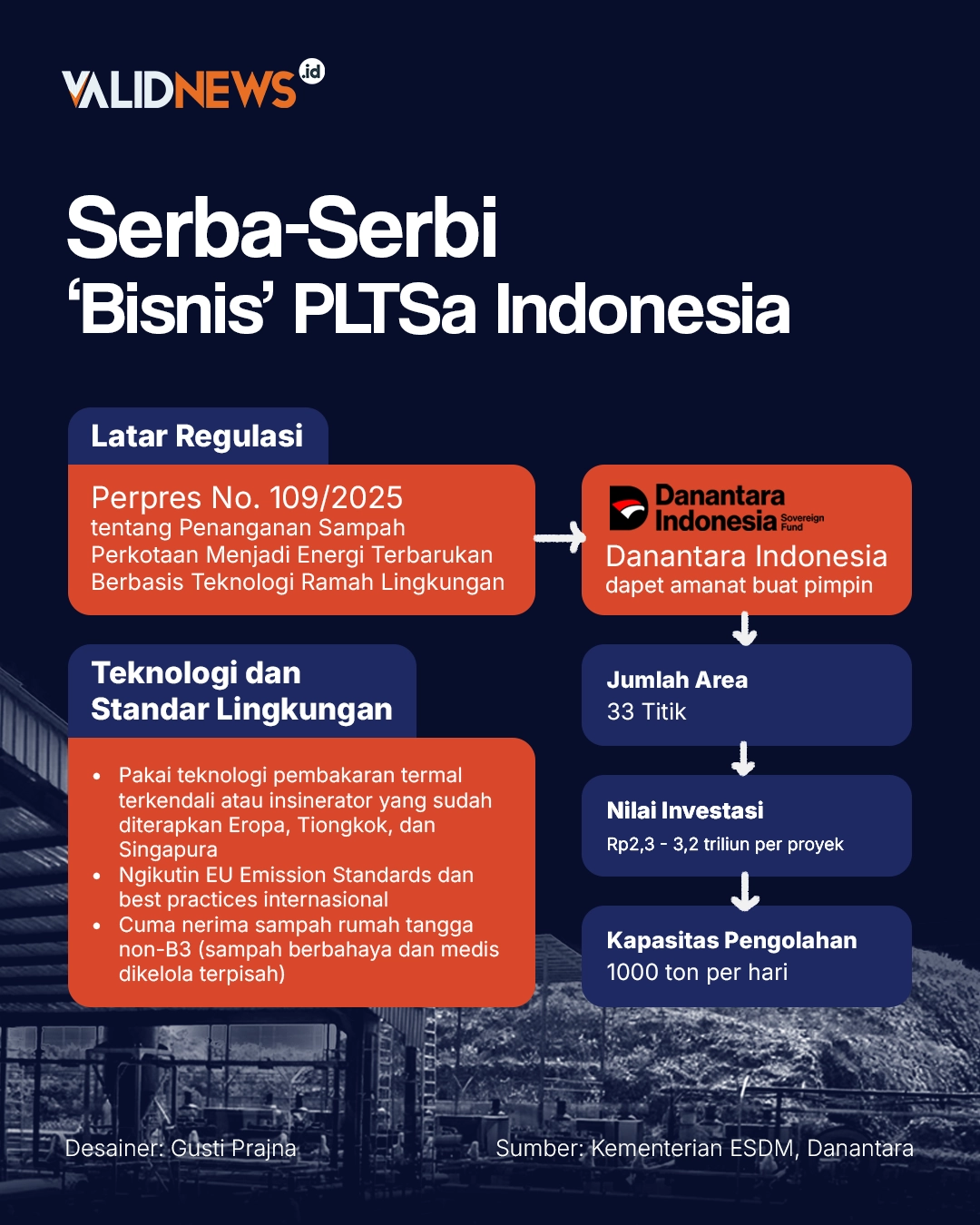 Berangkat dari hal ini, Presiden Prabowo Subianto menerbitkan Perpres 109/2025 tentang Penanganan Sampah Perkotaan Menjadi Energi Terbarukan Berbasis Teknologi Ramah Lingkungan. Regulasi itu jadi payung hukum atas proyek Pembangkit Listrik Tenaga Sampah (PLTSa) atau yang kini dijenamakan Pengelolaan Sampah Menjadi Energi Listrik (PSEL) atau Waste to Energy (WtE).