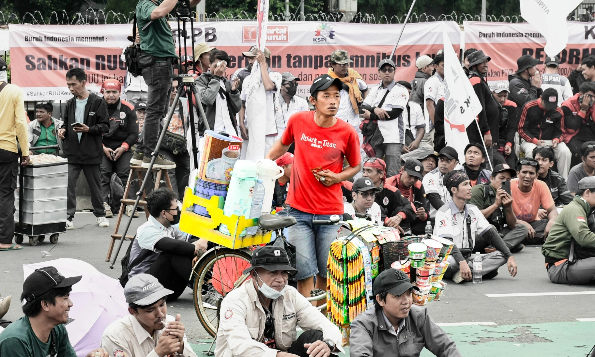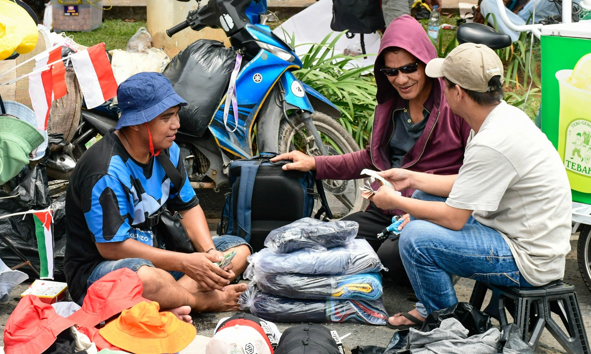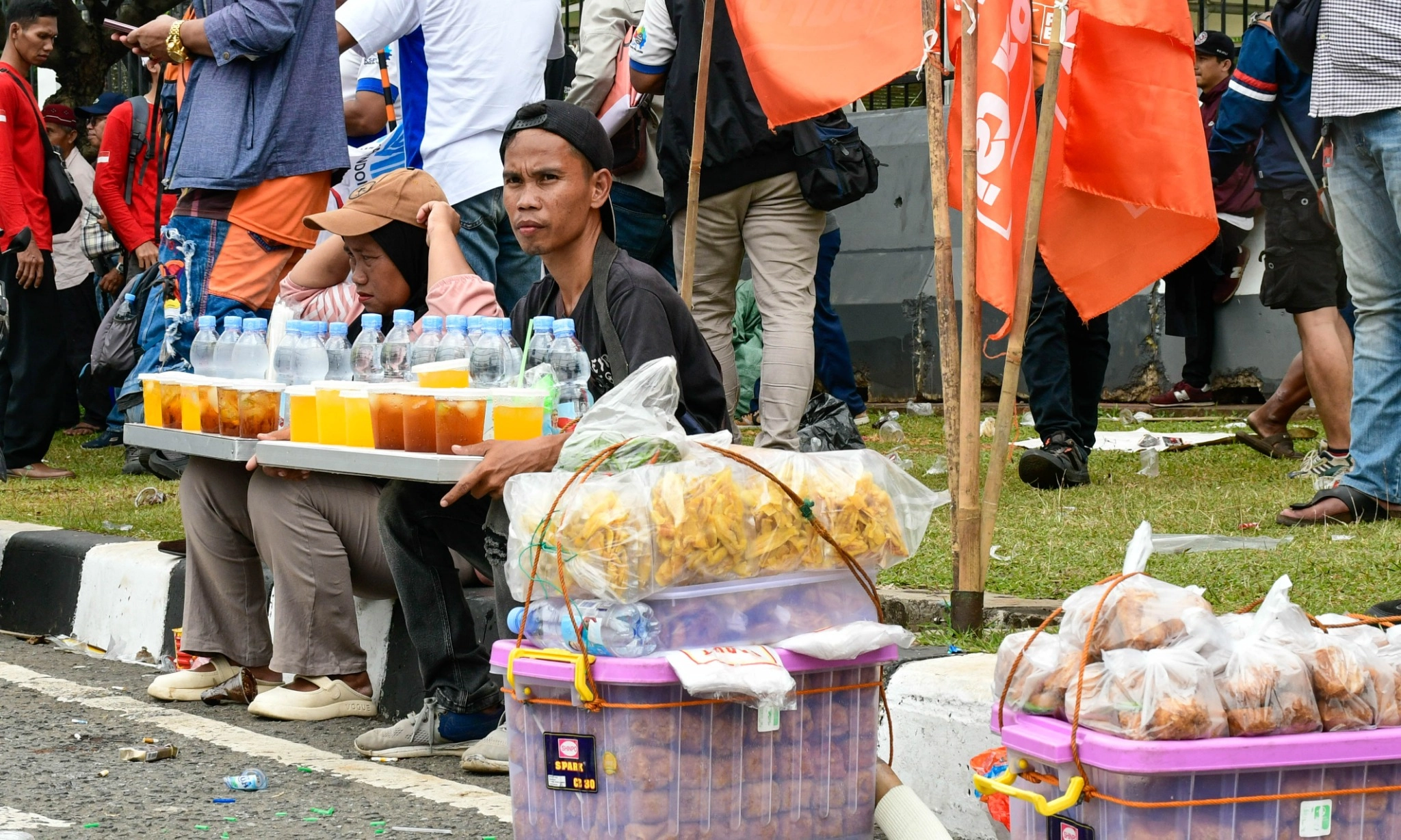 Seorang pedagang mengaku, biasanya mereka datang ke lokasi demonstrasi karena ajakan dari grup atau kelompok para pedagang asongan. “Kalau ada acara seperti ini biasanya omzet bisa naik Rp50–150 ribu, tergantung ramai atau enggaknya massa aksi,” tuturnya.