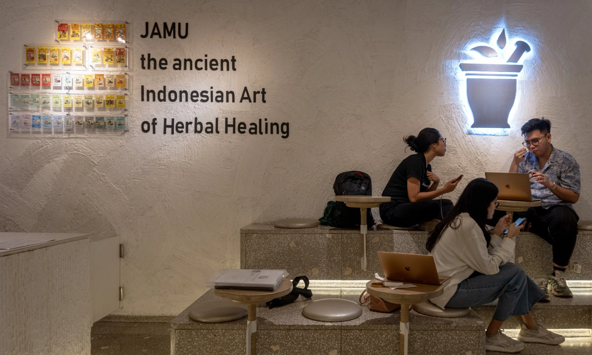 Sejumlah remaja menikmati es krim jamu di sebuah kafe jamu di salah satu mal Kota Semarang, Jawa Tengah, Selasa (11/6/2024). Antara Foto/Aji Styawan