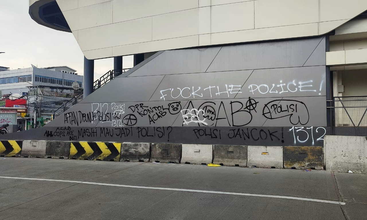 Kondisi halte Transjakarta Matraman Baru, Jakarta Timur, penuh coretan usai aksi demonstrasi pada Sabtu (30/8). Coretan terlihat di dinding hingga fasilitas halte. ValidnewsID/Agung M FatwaSelain itu, Dody juga berpesan agar koordinasi dengan pemerintah daerah serta Polda dan Polres ditingkatkan. Tujuannya, untuk memperjelas pembagian tugas penanganan infrastruktur di lapangan.
