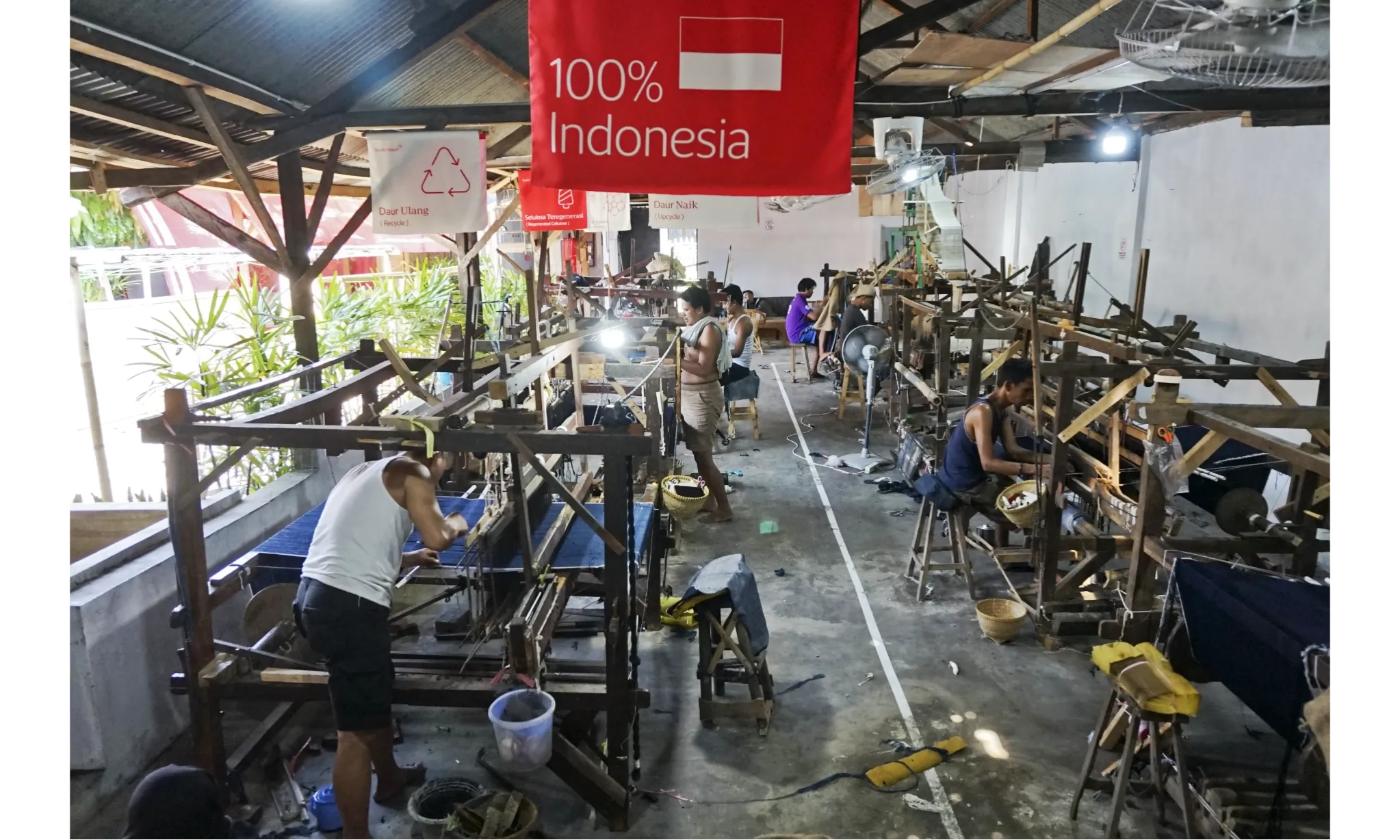 "Misalnya aku kerja sama dengan pengrajin A, dia itu dibantu dengan pengrajin yang lebih kecil lagi, ada pengrajin yang membuat pewarnaan, pengrajin yang menenun, lalu juga yang proses setelah bahannya ditenun," terangnya.