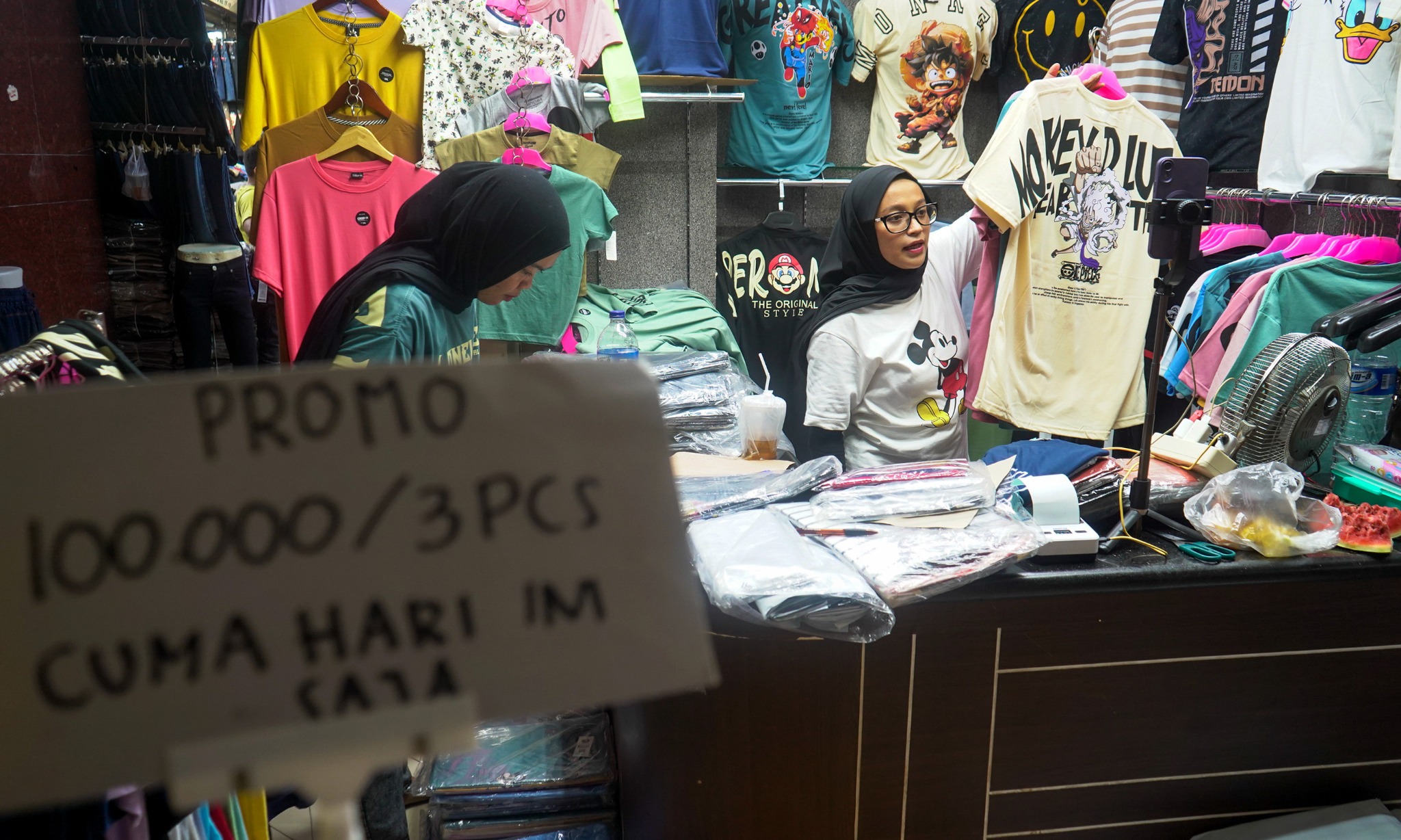 Pedagang mempromosikan barang dagangannya secara daring melalui platform E-commerce di Pasar Tanah Abang, Jakarta, Rabu (13/9/2023). ValidNewsID/Fikhri Fathoni