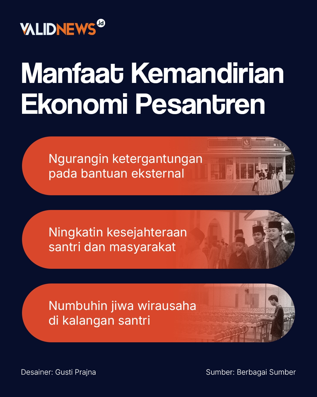 "Untuk mengembangkan usaha yang baik dan sehat, pesantren perlu penguatan manajemen usaha, akses pemasaran, digitalisasi, serta jejaring kemitraan agar pesantren benar-benar mandiri secara ekonomi," ujar CEO Alvara Research Center Hasanudin kepada Validnews, Selasa (21/10).