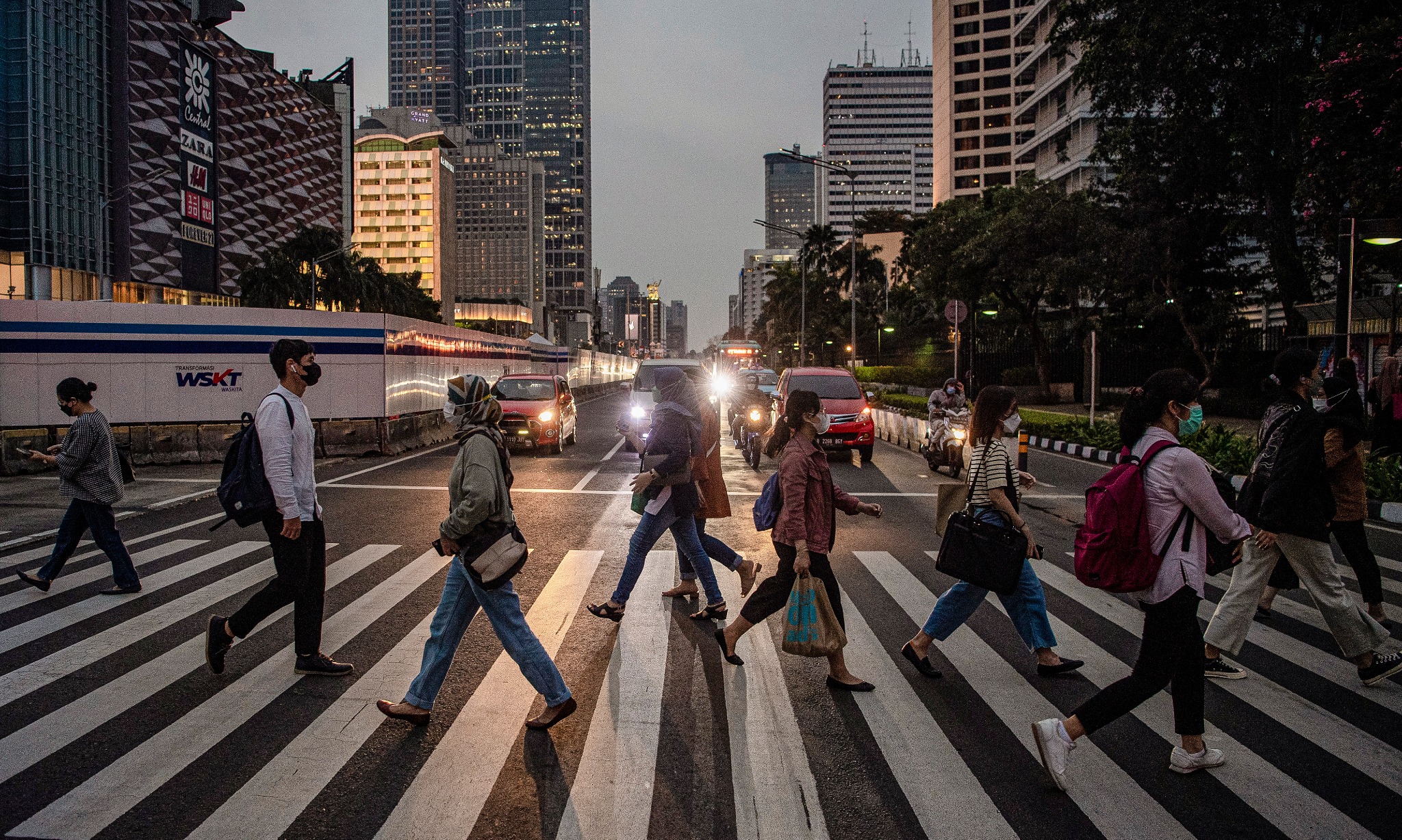 Warga menyeberang jalan di Jalan Jenderal Sudirman, Jakarta, Jumat (24/6/2022). Antara Foto/Sigid Kurniawan Pertumbuhan Bisnis