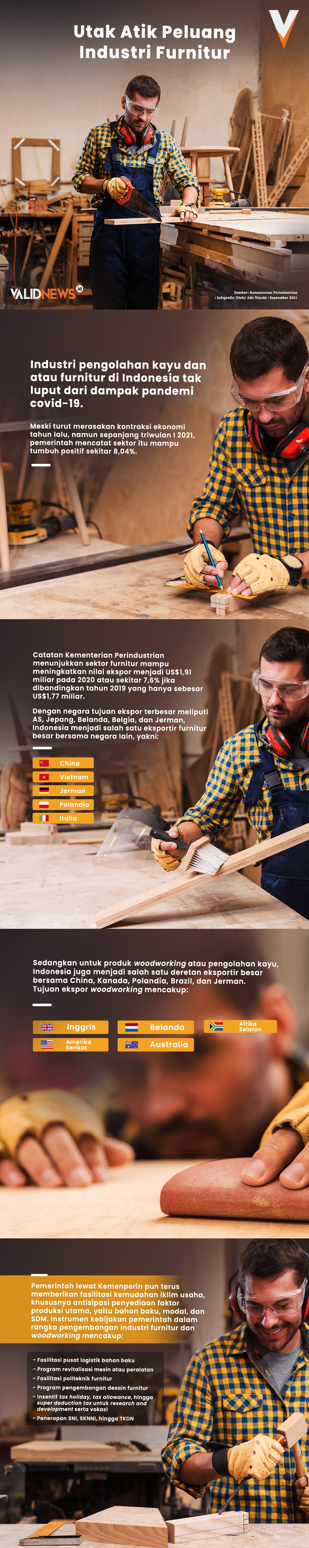 Pada 2022, ekspor produk furnitur dan kerajinan Indonesia mencapai US$3,5 miliar. Sebagai subsektor industri agro, industri furnitur memberikan kontribusi hingga 1,30% dengan nilai kinerja ekspornya sebesar US$2,5 miliar sepanjang tahun lalu.