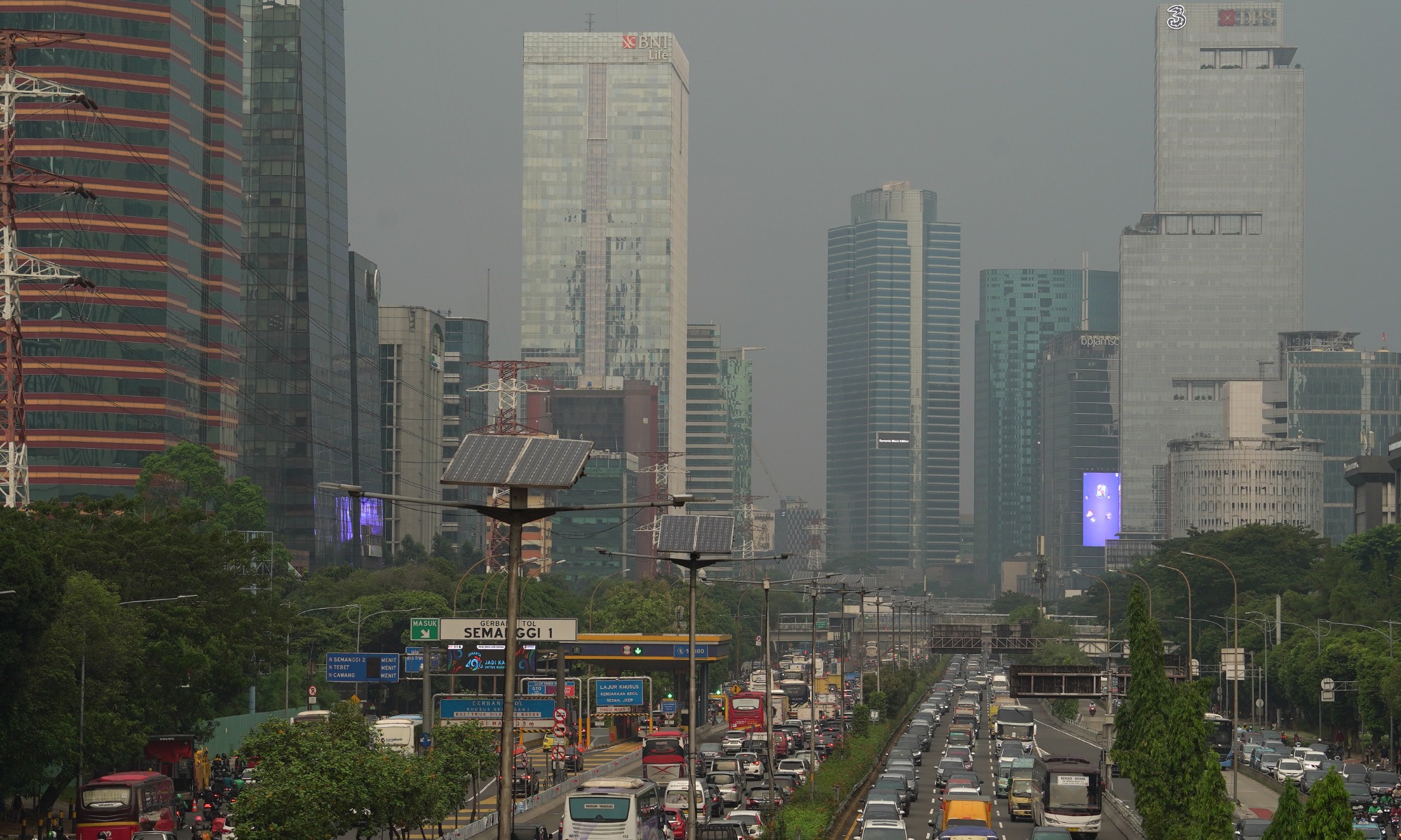 Suasana gedung bertingkat yang diselimuti asap polusi di kawasan Semanggi, Jakarta, Rabu (21/6/2023) . ValidNewsID/Fikhri Fathoni ISCC