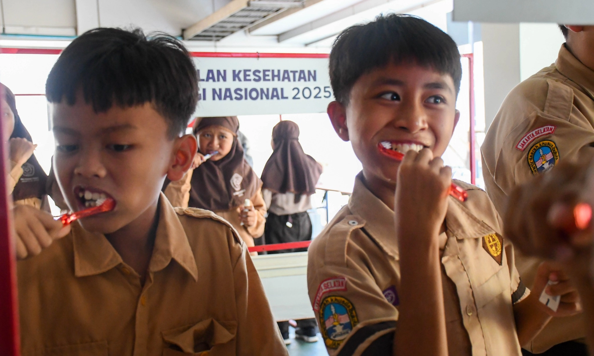 Sejumlah siswa sekolah dasar menggosok gigi bersama dalam rangka peringatan Bulan Kesehatan Gigi Nas ional 2025 di Fakultas Kedokteran Universitas Moestopo, Jakarta (23/9/2025). Kegiatan ini bertujuan meningkatkan kesadaran anak-anak akan pentingnya menjaga kesehatan gigi dan mulut sejak dini. Validnews/Hasta AdhistraBalik lagi soal bisnis, kondisi tersebut merupakan calon pasar yang seksi untuk bisa digarap klinik gigi dan semacamnya. Potensinya membesar lantaran masyarakat yang mencari pengobatan sakit mulut-gigi baru mencapai 11,2% dari total penduduk di atas 3 tahun yang 'divonis' punya masalah kesehatan 'pintu tubuh' ini.