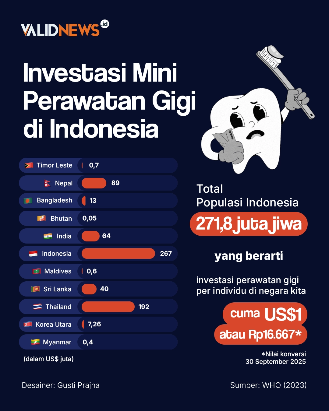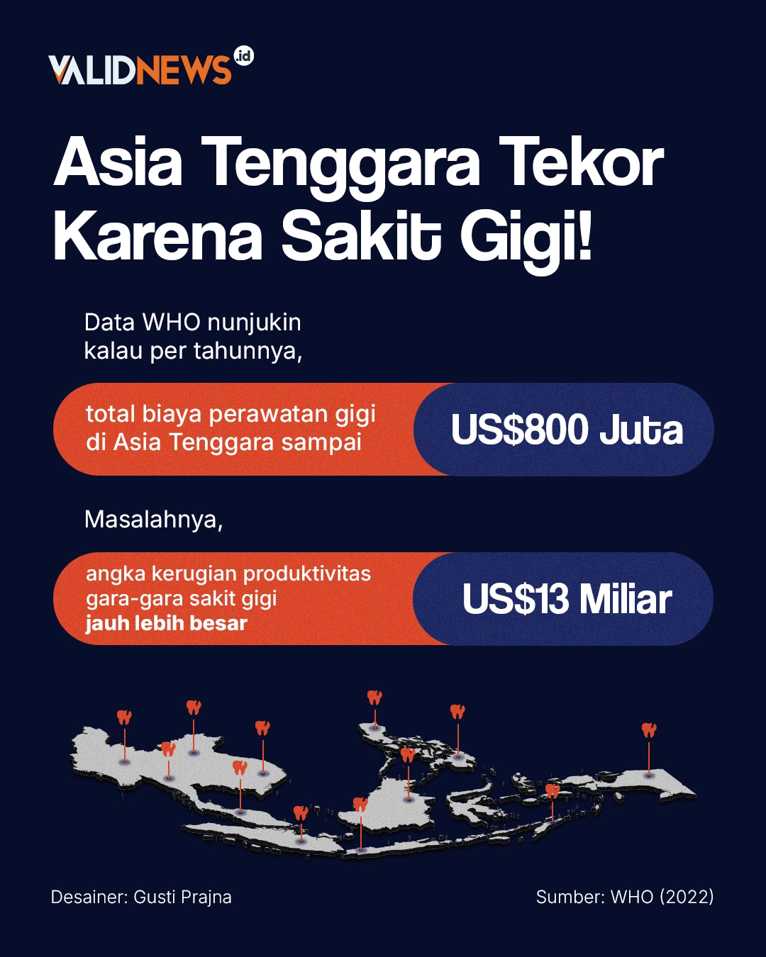 “Beban keuangan negara akan meningkat tiap tahunnya. Selain karena biaya perawatan gigi yang tinggi, biaya kehilangan akibat hilangnya produktivitas kerja sehingga bisa diperkirakan kerugian perekonomian negara sangat luar biasa bila tidak ditangani sejak dini,” tulis laporan WHO, dikutip Jumat (26/9).