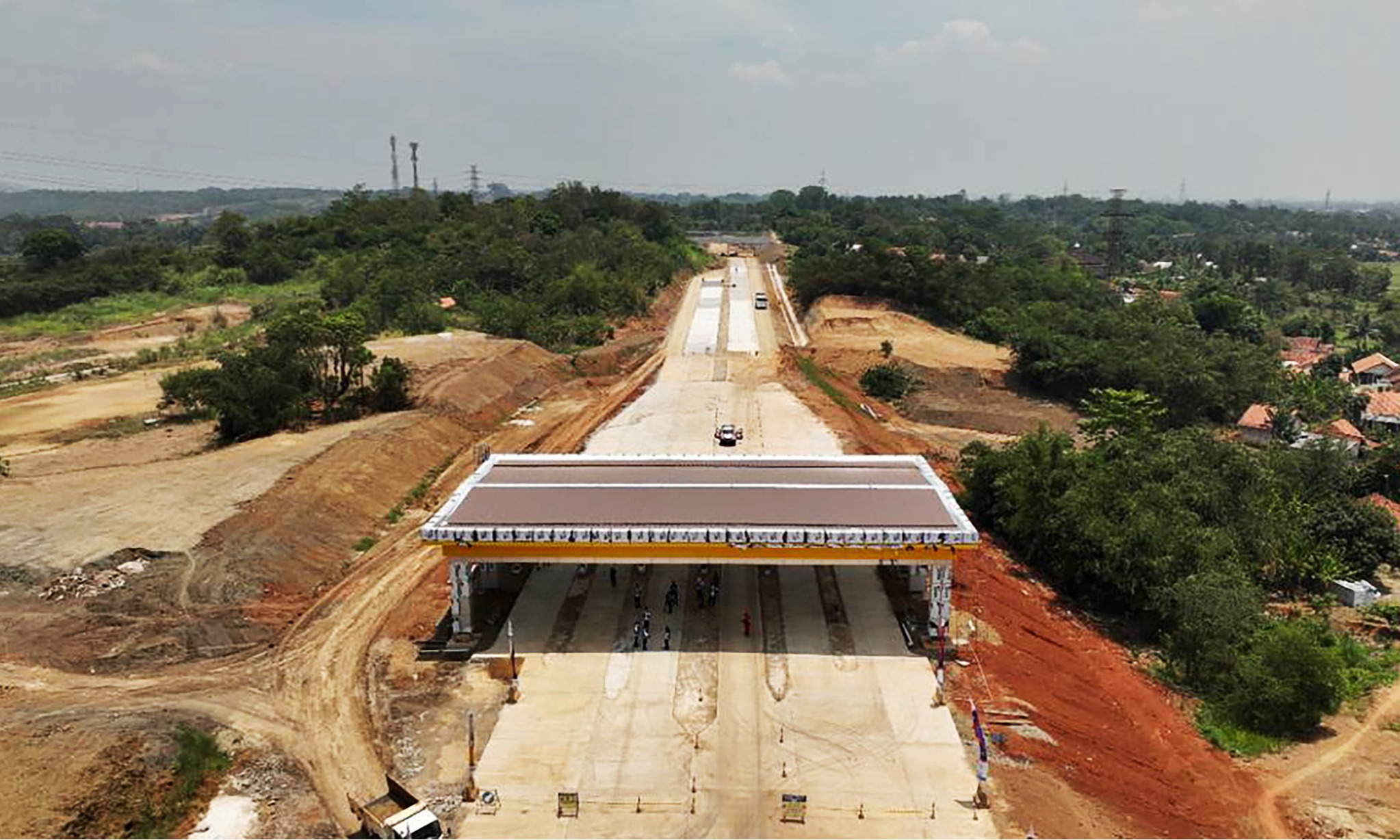 Foto udara konstruksi Jalan Tol Japek II Selatan Paket 3 Sukabungah-Sadang, Jawa Barat, Sabtu (6/8/2 022). Jalan Tol Japek II Selatan paket 3 Sukabungah-Sadang berjalan sesuai target. Dok/Humas Jasa Marga