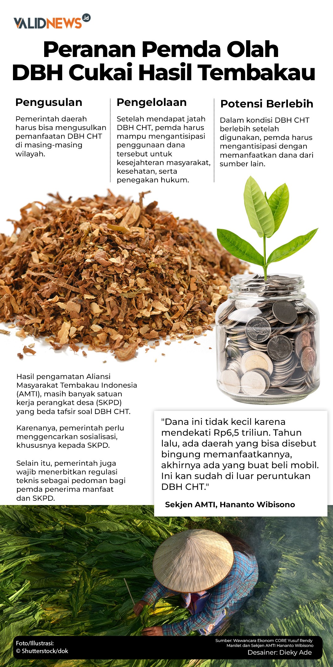 "Jadi kalau bicara peran pemda terkait DBH CHT, saya rasa akan tetap seperti itu. Di level pemda harusnya sudah bisa mengantisipasi bagaimana pengelolaannya agar tidak hanya sesuai dengan amanat UU, tetapi juga memastikan untuk kesehatan atau kesejahteraan," jabar dia.