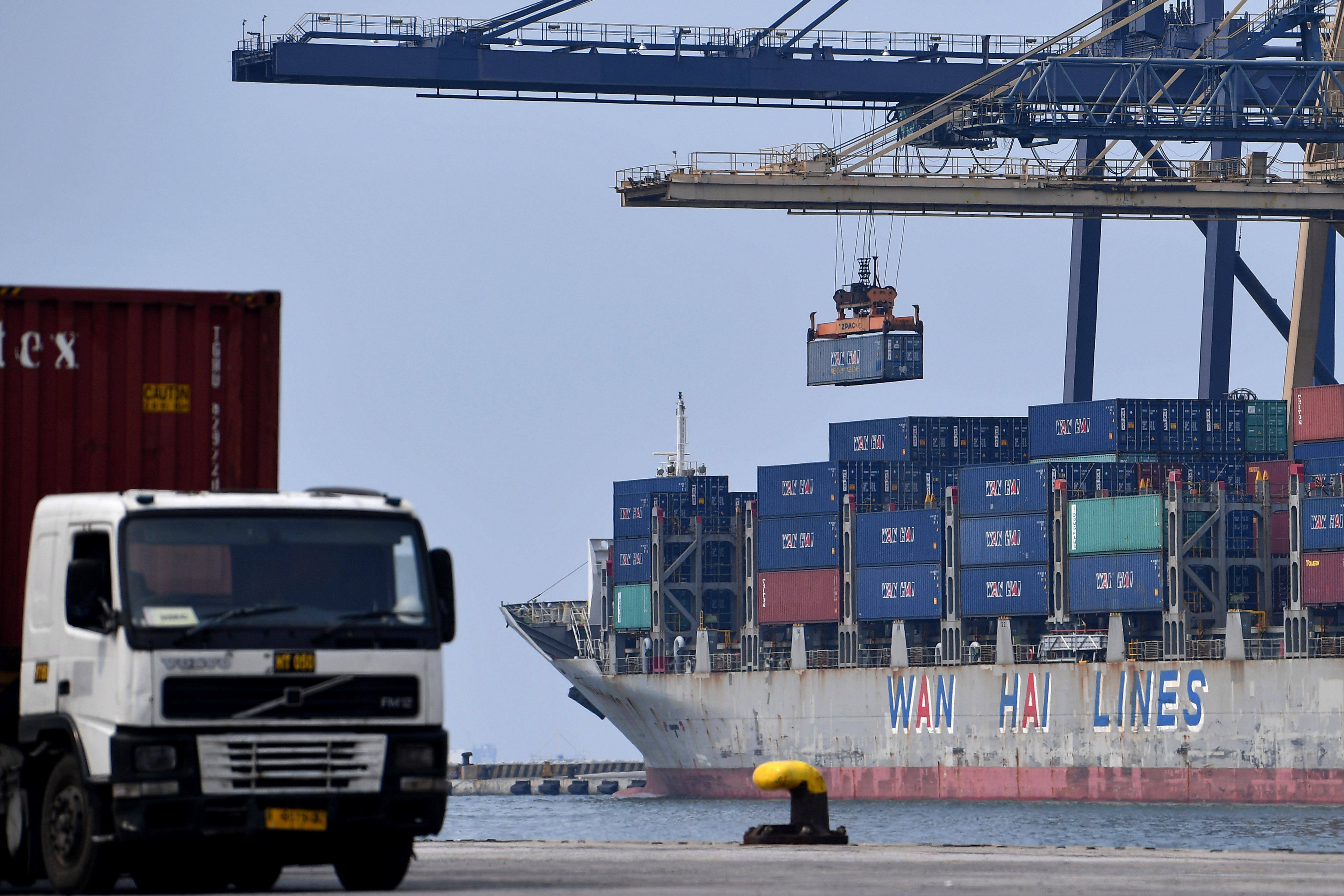 Suasana bongkar muat peti kemas di Pelabuhan Tanjung Priok, Jakarta, Selasa (15/9/2020). Antara Foto/Sigid Kurniawan
