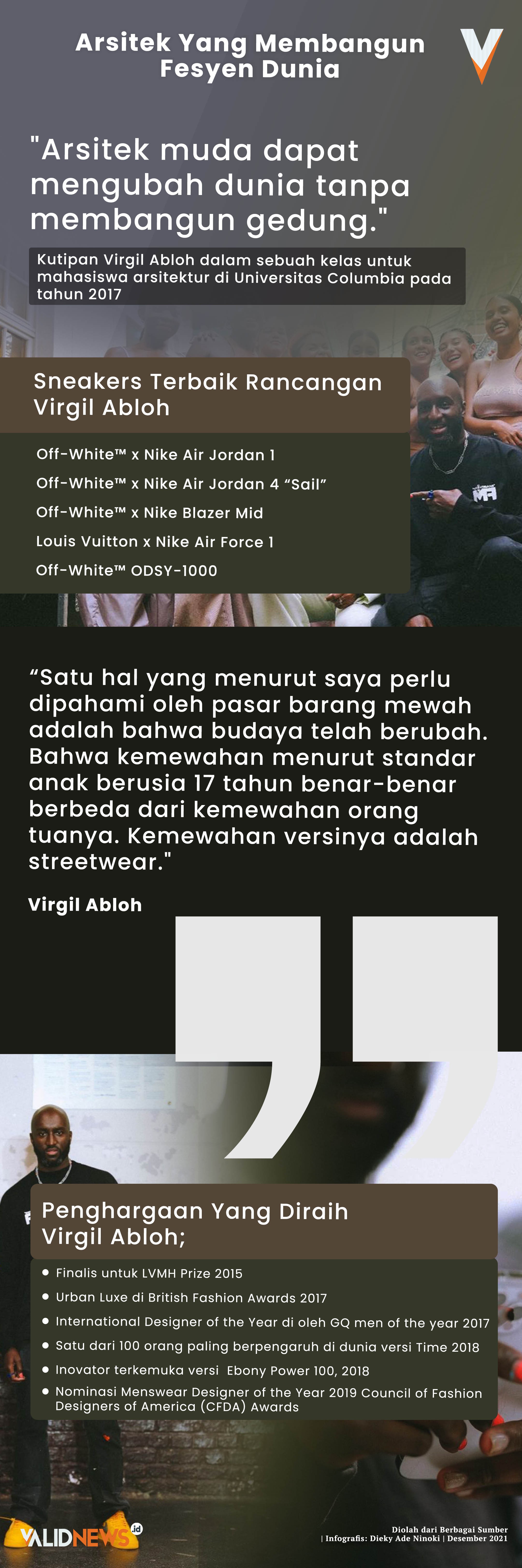 Salah satu sneakers koleksi Abloh yang paling menarik perhatian adalah kolaborasi Louis Vuitton dan Nike. Sneaker edisi khusus yang terbuat dari kulit anak sapi itu awalnya dibuat untuk koleksi pria musim semi-musim panas Louis Vuitton 2022, di mana Abloh menjadi direktur artistiknya.