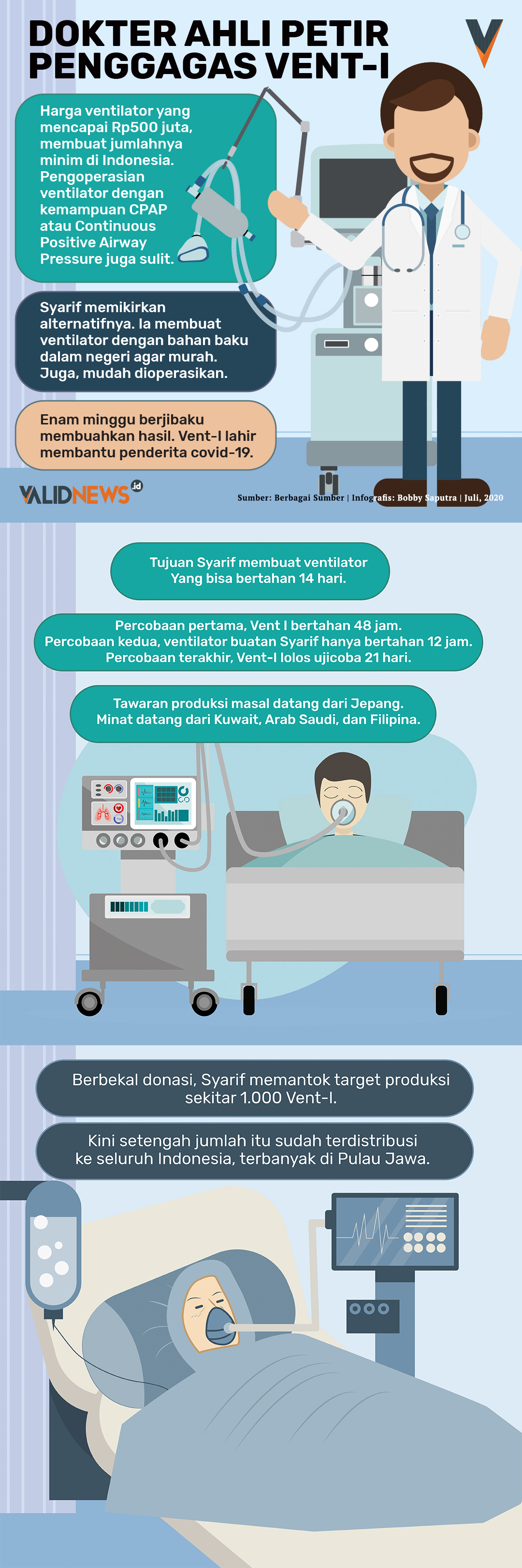 Berbekal pemikiran: apapun yang bisa dibuat manusia, maka ia bisa membuatnya, Syarif pun memulai prosesnya. Nama untuk ventilator rancangannya pun sudah disiapkan. Yakni, Vent-I.