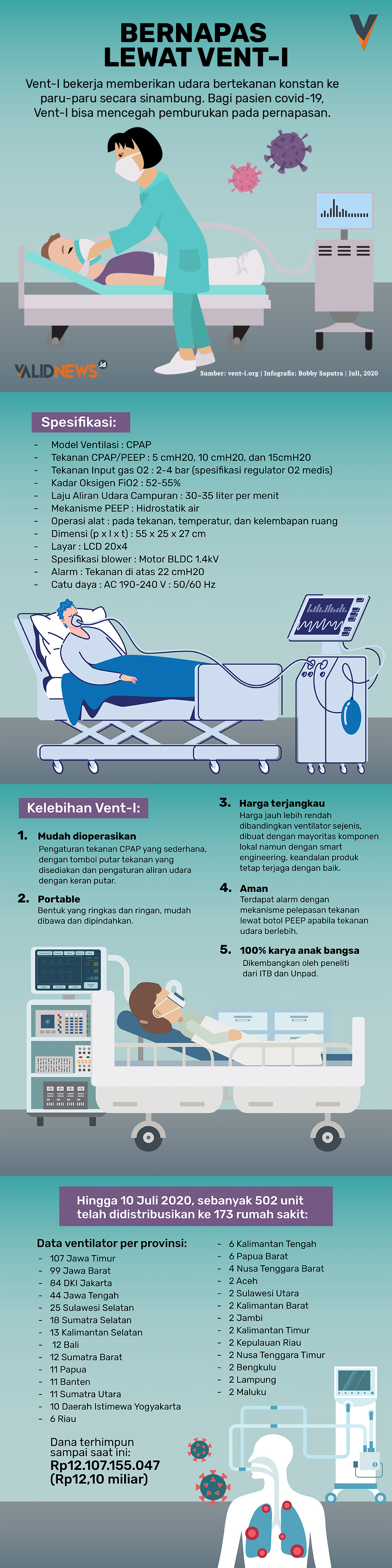 Semula dana yang terkumpul hanya mampu untuk memproduksi 200 unit. Lama-lama, jumlahnya bertambah, sampai mencapai Rp12 miliar lebih. Setara dengan 1.000 ventilator.