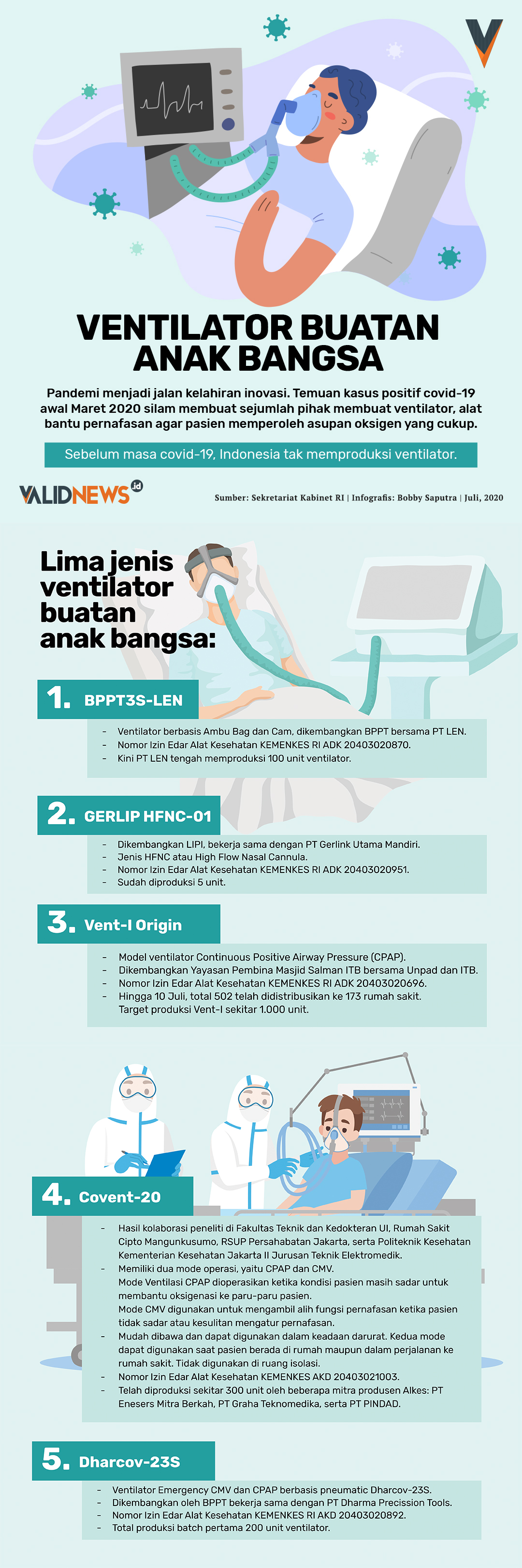 Enam pekan berjuang, Ventilator Portabel Indonesia atau Vent-I telah dinyatakan lolos uji produk oleh Balai Pengamanan Fasilitas Kesehatan (BPFK) Kementerian Kesehatan Republik Indonesia pada 21 April 2020. Semua kriteria tes berhasil dilewati.