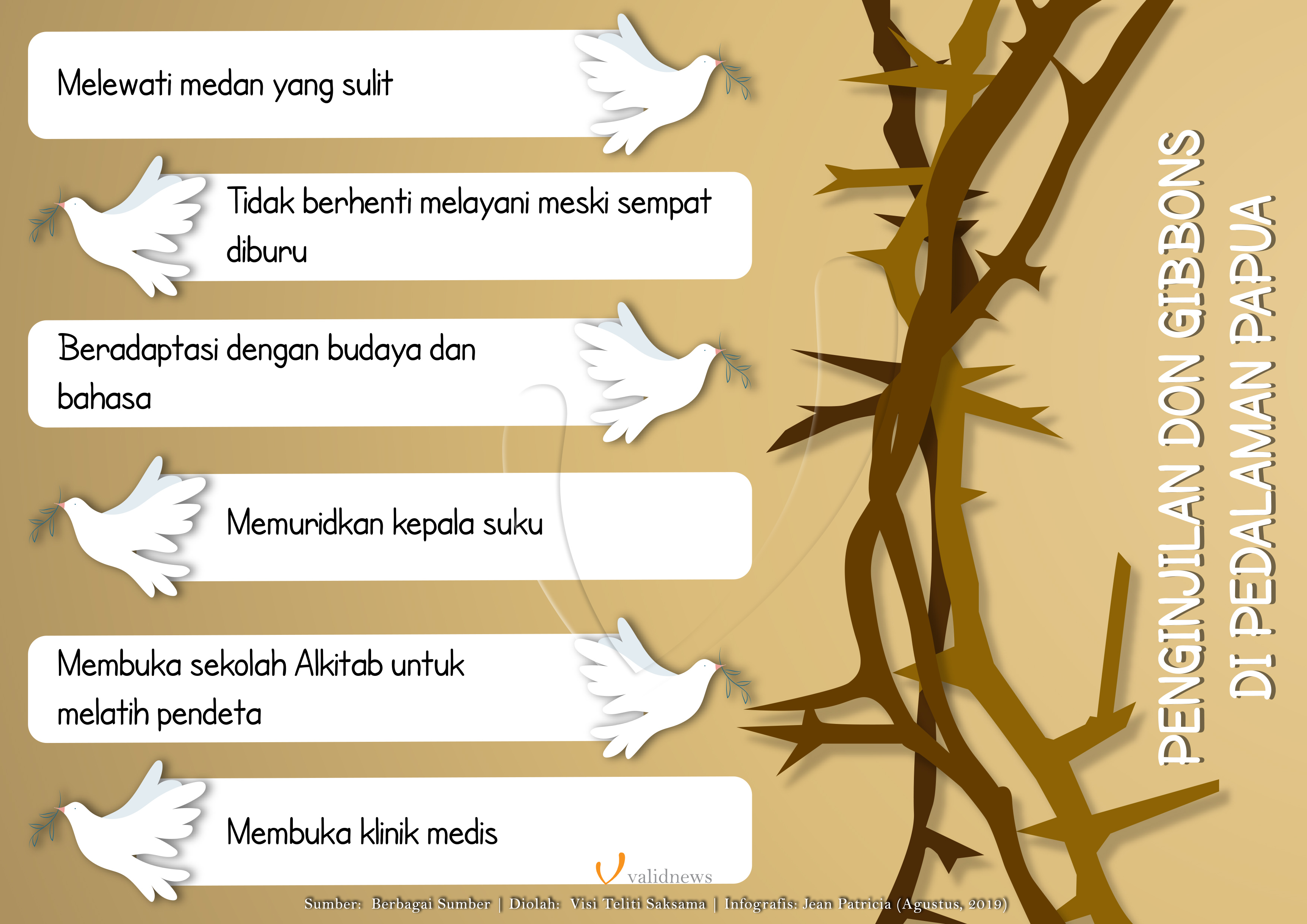Penginjil asal Amerika serikat itu mendatangi suku Damal yang ada di lembah Ilaga. Pria yang kini lebih dikenal dengan Don Gibbons itu datang bersama rekan misionarisnya, Gordon Larson. Mereka mendaki berhari-hari dalam kondisi berbahaya untuk mencapai lembah Ilaga.