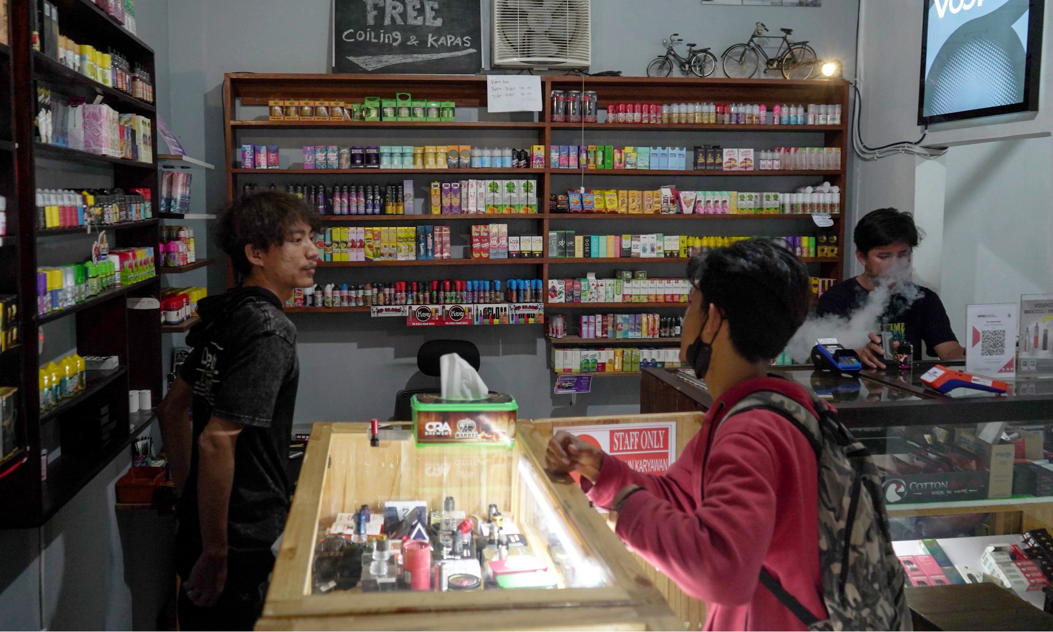 Di kalangan anak muda, rokok elektrik makin populer dan penjualannya mudah ditemukan di Indonesia. Setiap daerah setidaknya memiliki sepuluh tempat penjualan atau retail rokok elektrik.