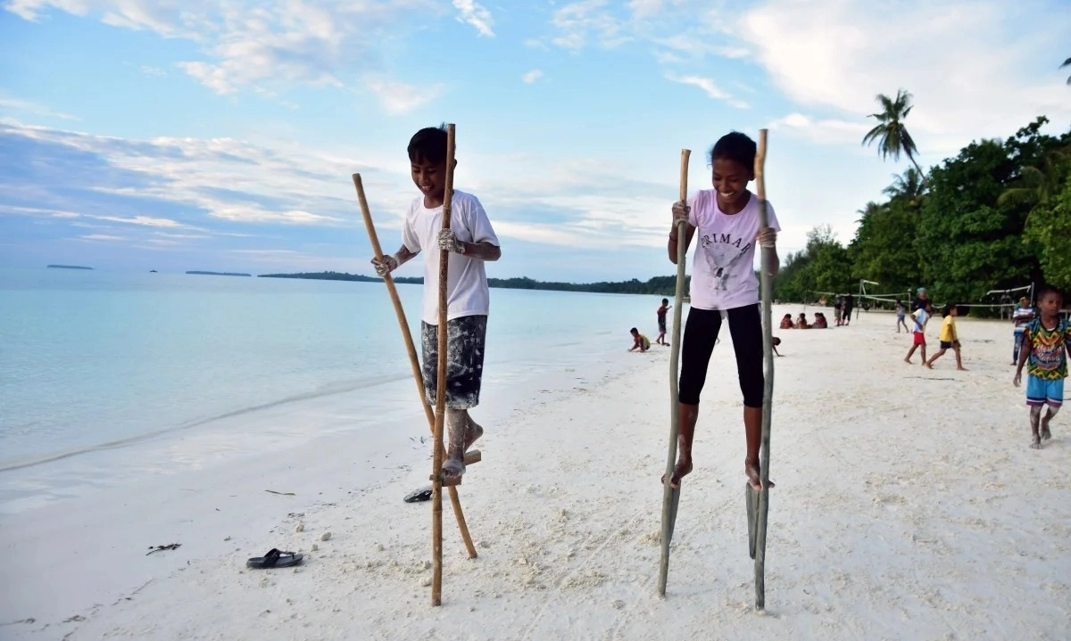 Sejumlah bocah memainkan permainan tradisional enggrang yang disebut warga setempat dengan kaki kuda di Pantai Ngur Bloat Kepulauan Kei, Kabupaten Maluku Tenggara, Provinsi Maluku, Selasa (26/10/2021). ANTARA FOTO/FB Anggoro/. Di sudut timur Indonesia, terdapat satu destinasi wisata yang cocok untuk slow travel. Pamornya mungkin tidak setenar Raja Ampat. Namun, keindahannya layak diperhitungkan. Kepulauan Kei di Kabupaten Maluku Tenggara, merupakan definisi sejati dari konsep slow travel. Di sini, semuanya seolah berjalan lambat.