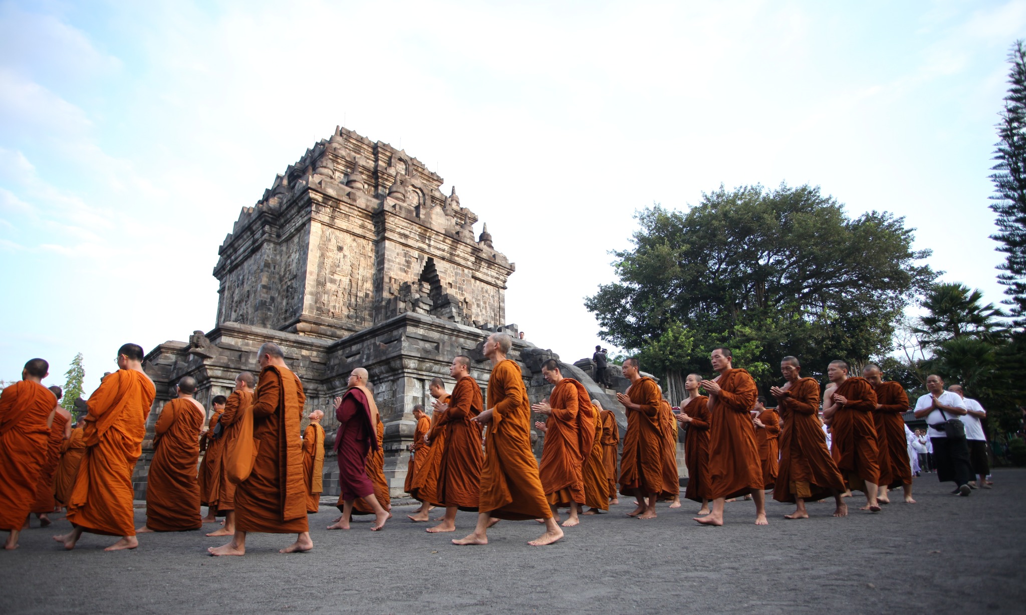 Sejumlah biksu berada di Candi Mendut, Magelang, Jawa Tengah. Shutterstock/oky prasetya aji pratikno