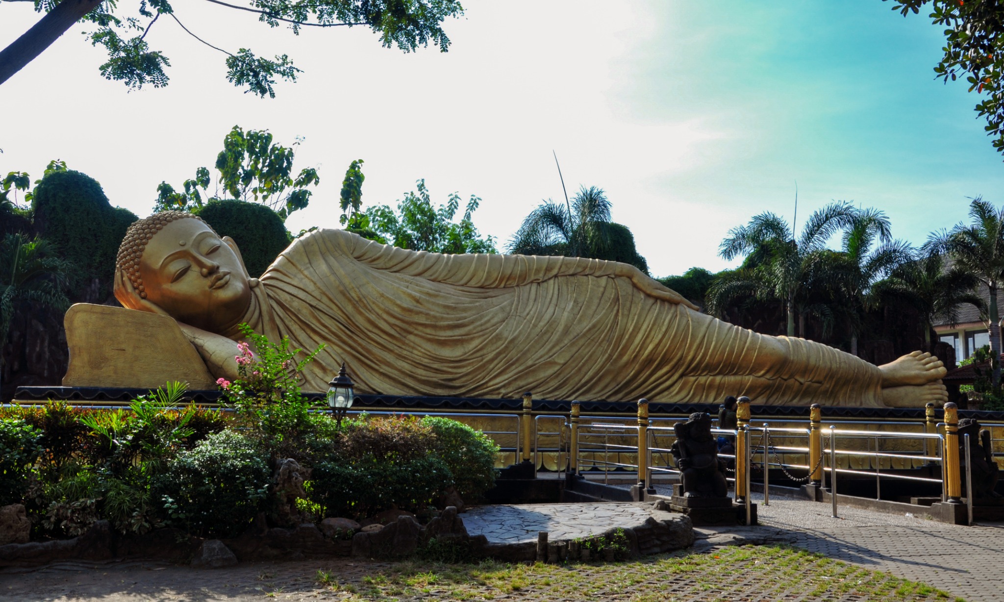 Patung Buddha berbaring di Maha Vihara Mojopahit, Mojokerto. Shutterstock/Ivu Fajar |