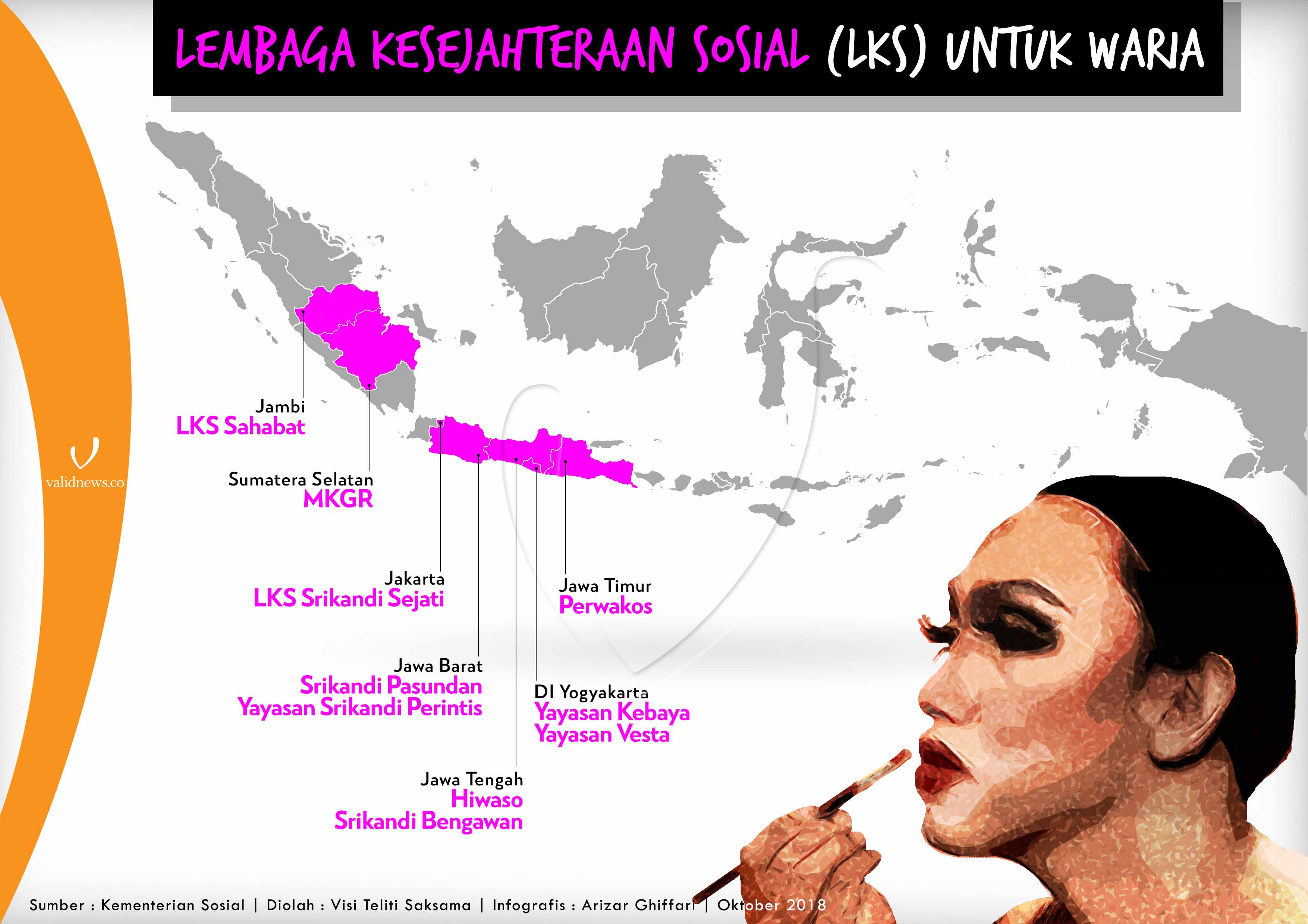 Dari 78 lembaga kesejahteraan sosial (LKS) yang bermitra dengan Kemensos dalam menangani pasien HIV/AIDS, 10 LKS di antaranya terdapat pasien waria. Delapan di antaranya terjadi di Pulau Jawa. Dua lainnya di Pulau Sumatera.