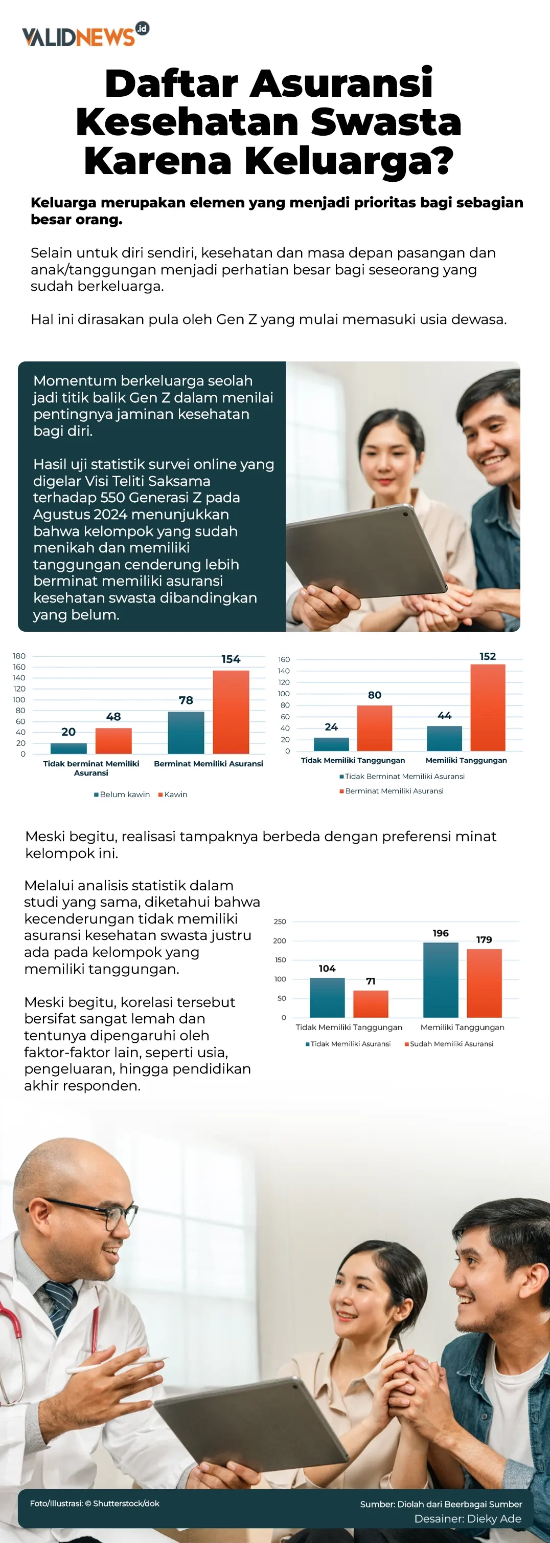 Survei juga menunjukkan, status sebagai pekerja atau bukan, tidak lah menjadi penentu. Nyatanya yang lebih berpengaruh terhadap kepemilikan Gen Z atas asuransi kesehatan swasta adalah keberadaan tanggungan, terutama yang terkait hubungan keluarga.