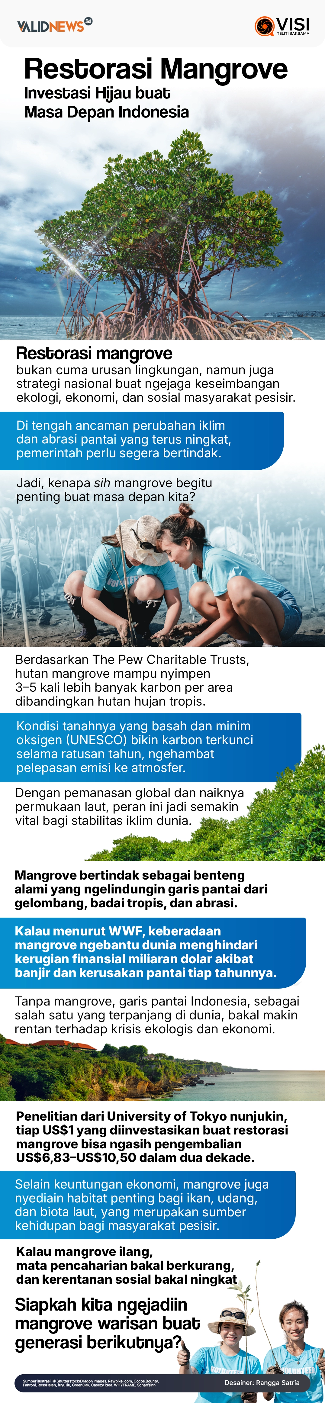 Hanya melalui metode yang tepat dan keterlibatan seluruh pihak, restorasi mangrove dapat membawa manfaat keberlanjutan lebih besar dan berjangka panjang. Sobat Valid siap menjadi salah satu bagian dari solusi ini?