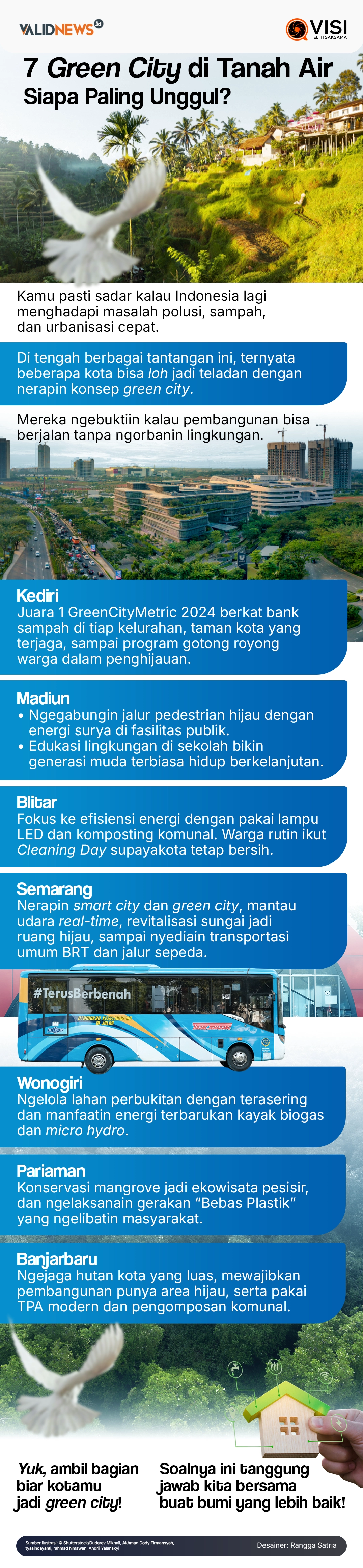 Semua kondisi ini membuat konsep green city terasa semakin mendesak. Sobat Valid tentu sepakat kalau kita butuh kota yang tidak hanya nyaman untuk ditinggali sekarang, tetapi juga aman dan layak bagi generasi mendatang.