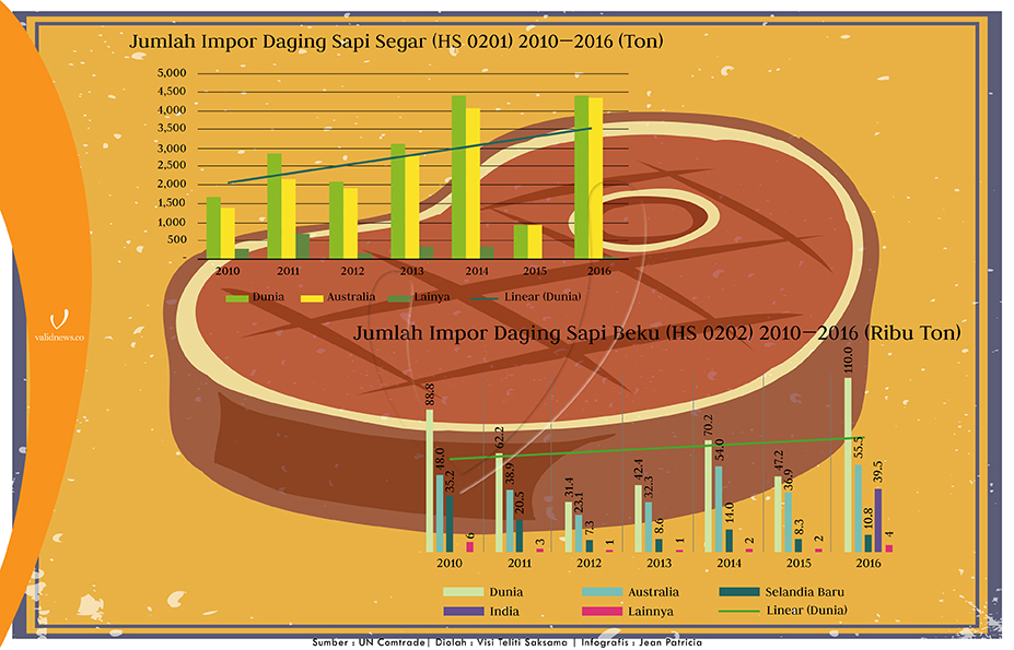 Sementara itu, produksi daging sapi dalam negeri pada 2017 hanya mencapai 437.300 ton. Dari perhitungan itu, Indonesia masih kekurangan persediaan daging sapi sebesar 282.925 ton.