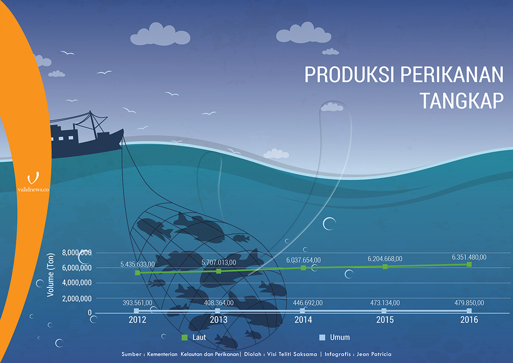 Adapun total produksi perikanan ditargetkan mencapai 26,46 juta ton. Terdiri dari 8,02 juta ton perikanan tangkap, 7,45 juta ton perikanan budidaya, dan 10,99 juta ton rumput laut. Target produksi perikanan tangkap sebesar 8,02 juta ton ini terdiri dari produksi perikanan tangkap di laut sebesar 7,38 juta ton dan perairan darat sebesar 636.080 ton.