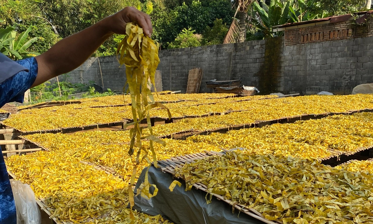 “Pengetahuan saya tentang ekspor masih terbatas waktu itu. Jadi bahasa saya juga ngawur. Tapi saya tetap cari pasar saja. Kaya daun talas ini kan dipakai untuk rokok di luar negeri, ya sudah saya cari-cari perusahaan luar negeri mana yang produksi rokok dan mau mengambil daun talas rajang kami. Cari satu-satu di Google Maps pakai bahasa inggris, tobacco gitu,” cerita Ali.