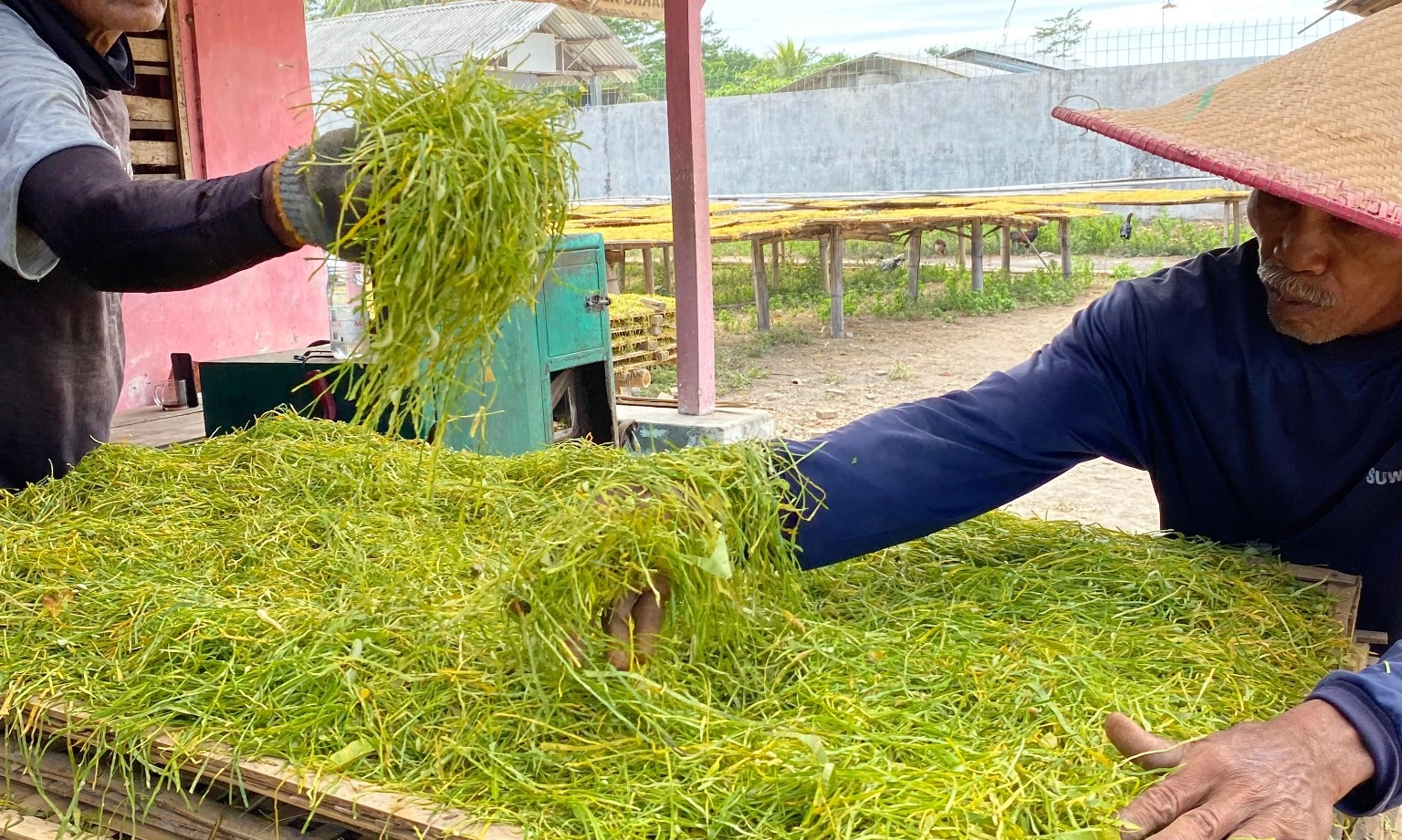 Rajangan daun talas jadi bahan baku rokok shisa untuk negara timur tengah. Gunar Muhamad Ali/PT Cafam Blessing Indonesia