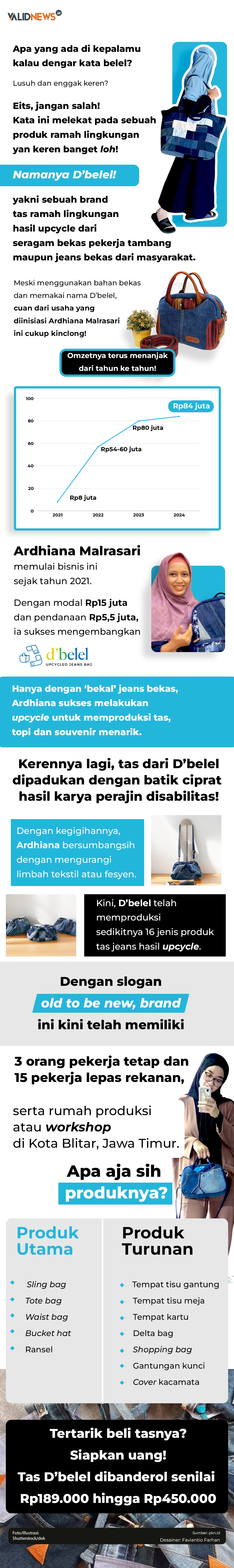 D’belel, usaha lokal asal Blitar, Jawa Timur, menyuguhkan tas fesyen unik berbahan dasar jeans atau denim. Bukan sembarangan jeans, ternyata D’belel melakukan proses upcycle dengan mengolah celana jeans bekas menjadi berbagai macam produk tas.