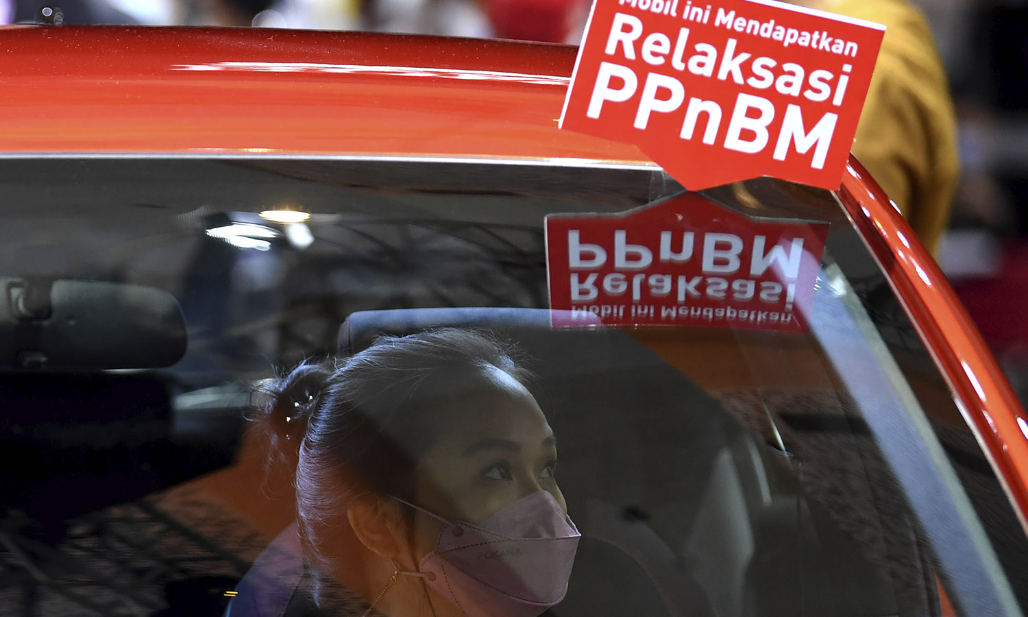 Pengunjung menaiki mobil yang dipamerkan dalam IIMS Hybrid 2021 di JiExpo Kemayoran, Jakarta, Minggu (18/4/2021). Presiden Joko Widodo menyatakan insentif Pajak Penjualan atas Barang Mewah Ditanggung Pemerintah (PPnBM-DTP) telah membuat angka pesanan pembelian atau "purchase order" mobil hingga pertengahan April 2021 melonjak hingga 190 persen. Antara Foto/Sigid Kurniawan