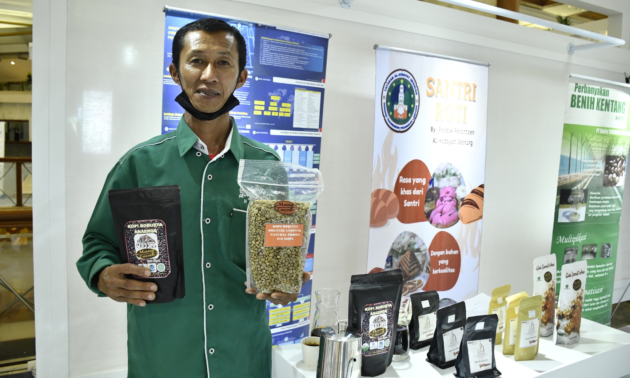 Kopi hasil olahan Himpunan Ekonomi Bisnis Pesantren (HEBITREN) dalam ISEF 2022 di Jakarta Convention Center (JCC), Jakarta Pusat, Rabu (5/10/2022). ValidnewsID/Fikhri FathoniWapres Ma'ruf Amin yang hadir membuka ISEF 2022 di JCC Senayan pada Kamis (6/10) lalu menuturkan bahwa,"“Ekonomi syariah juga dapat diandalkan untuk menciptakan keseimbangan antara pertumbuhan dan pemerataan karena bertumpu pada sektor riil sehingga berperan penting dalam ekonomi nasional.”