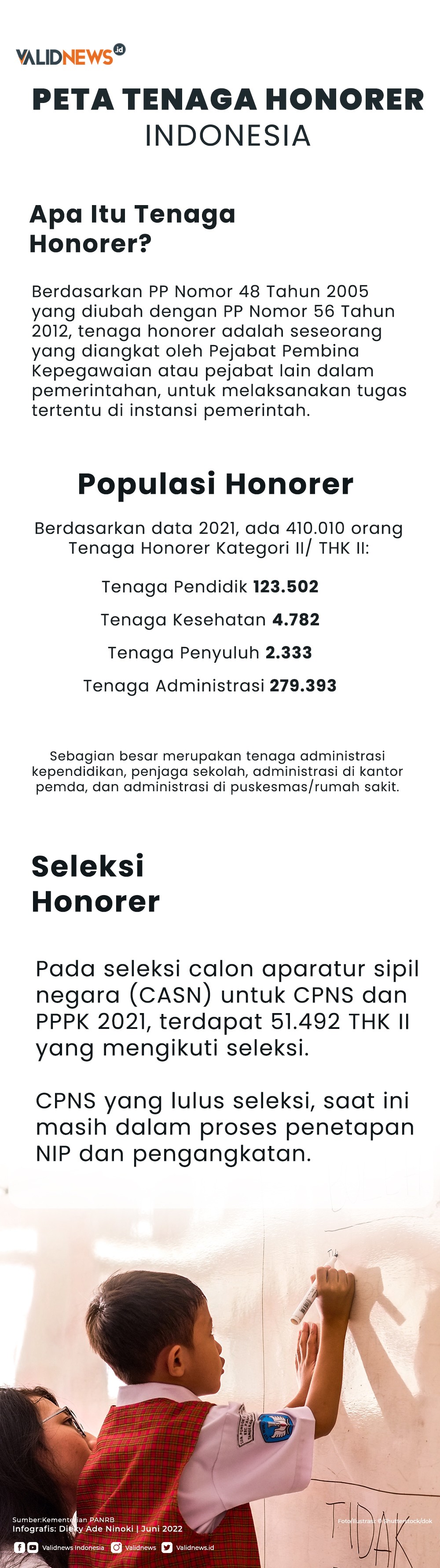 Menurut catatan Kementerian PANRB, pada 2005 ada 900 ribu tenaga honorer di seluruh instansi pemerintahan. Pada tahun yang sama, pemerintah mengangkat 860 ribu tenaga honorer menjadi PNS melalui CASN dan PPPK.