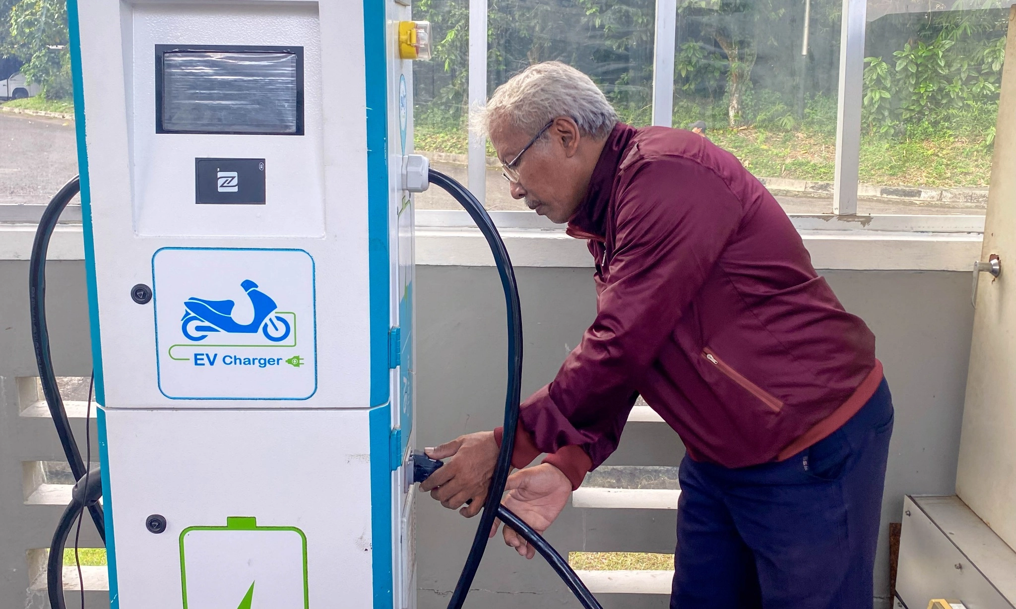 Seorang pekerja sedang memperbaiki mesin pengisi daya sepeda motor listrik di stasiun pengisian kend araan listrik (EV Charger) milik BRIN. Validnews/Hasta AdhistraDitjen Ketenagalistrikan Kementerian ESDM pun baru saja menyelenggarakan Forum Keselamatan Ketenagalistrikan pada Ekosistem Kendaraan Bermotor Listrik Berbasis Baterai. Forum itu digelar untuk menyerap aspirasi pemangku kepentingan dalam proyek infrastruktur pendukung EV yang aman bagi seluruh lapisan masyarakat.